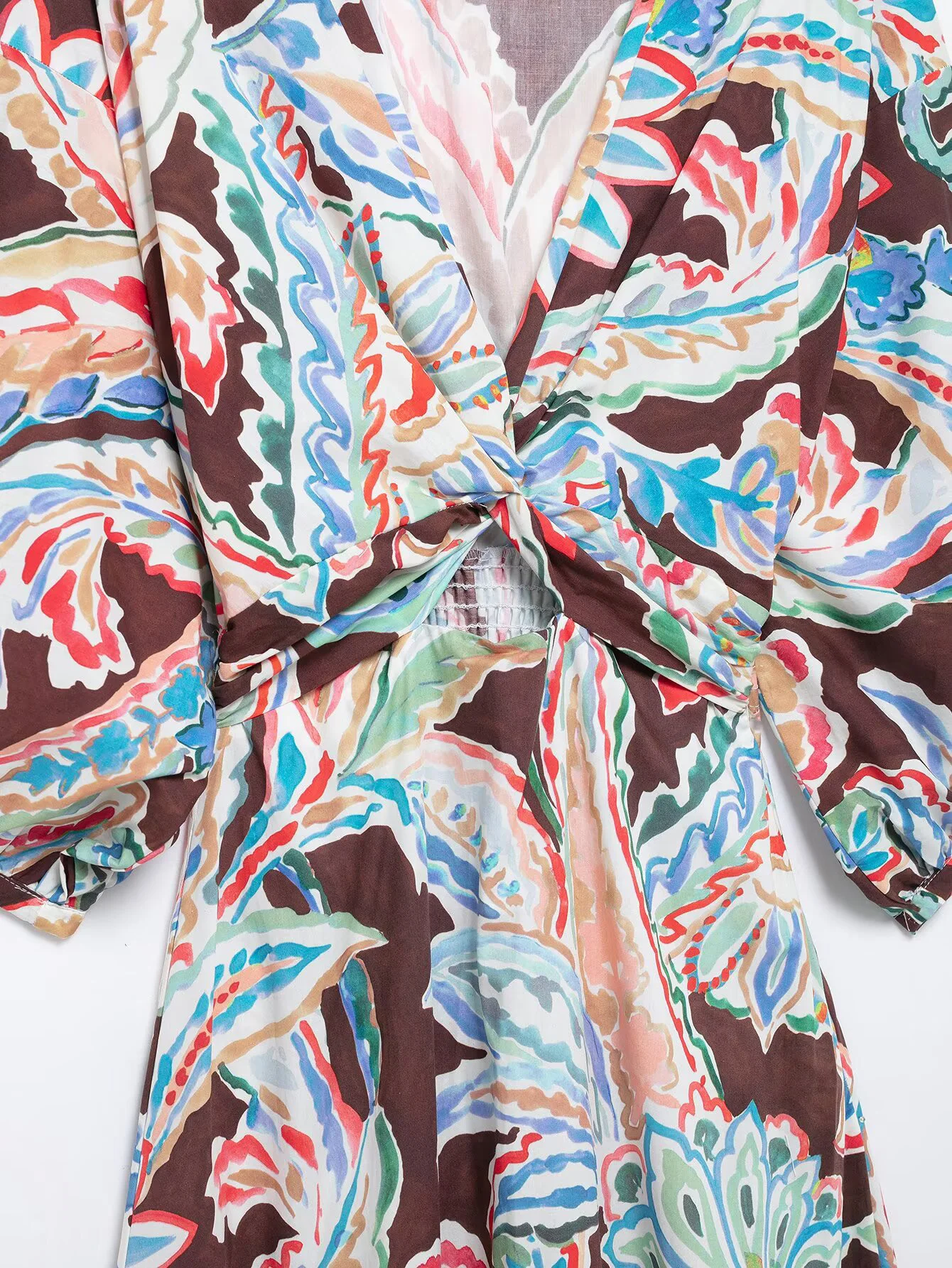 DEEABAE Spring New Women’s Clothing Knot Decoration Printed Poplin Long Sleeve V-neck Slimming Long Dress Midi Dress