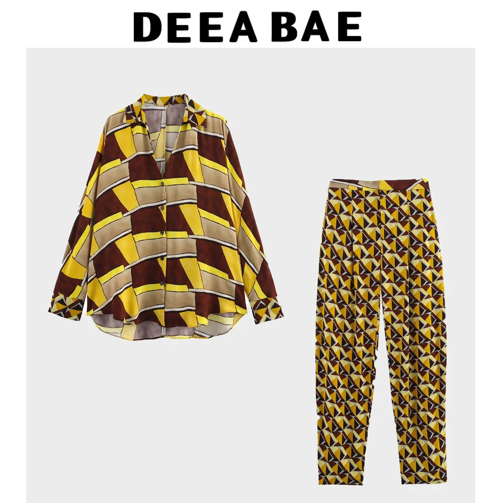 DEEABAE Spring New Women's Clothing Series Fashionable Printed Long Sleeved Shirt Stylish Floral Print Slimming Casual Pants