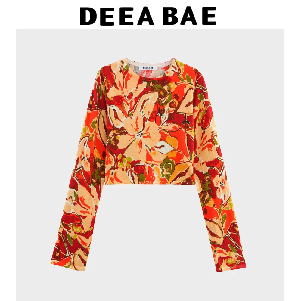 DEEABAE Spring New Women's Clothing Temperament Printed Long Sleeved Round Neck Fashionable Knitted Pullover