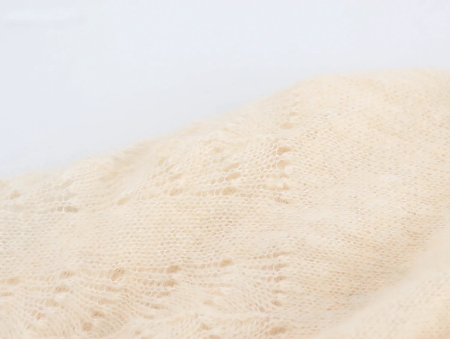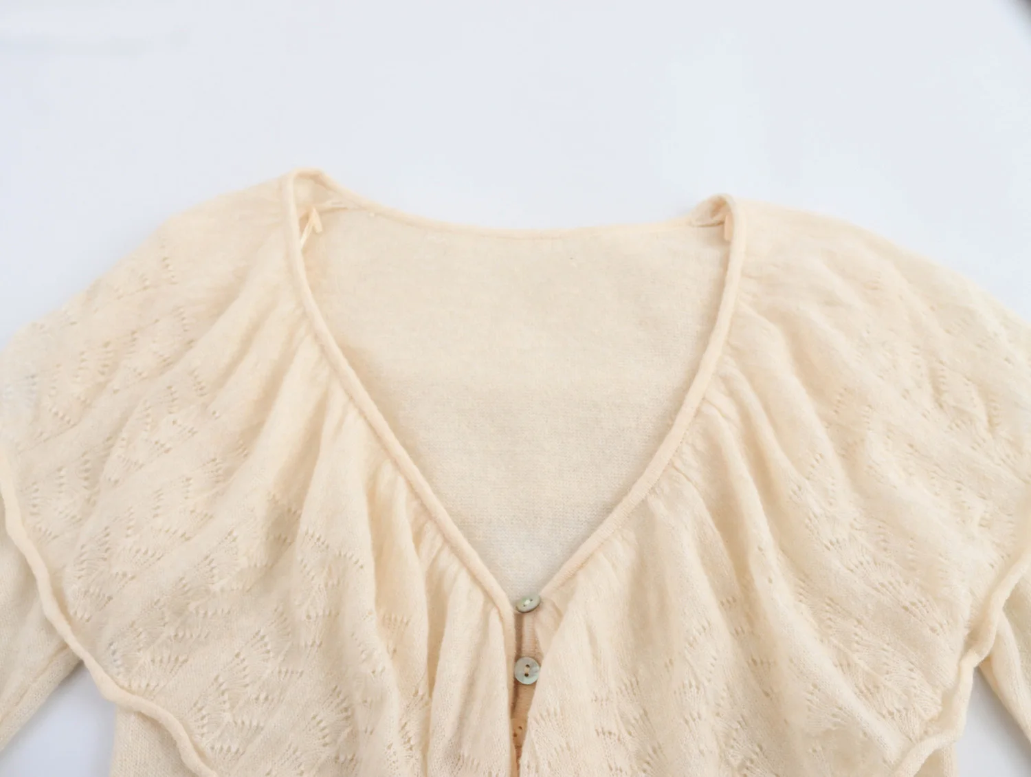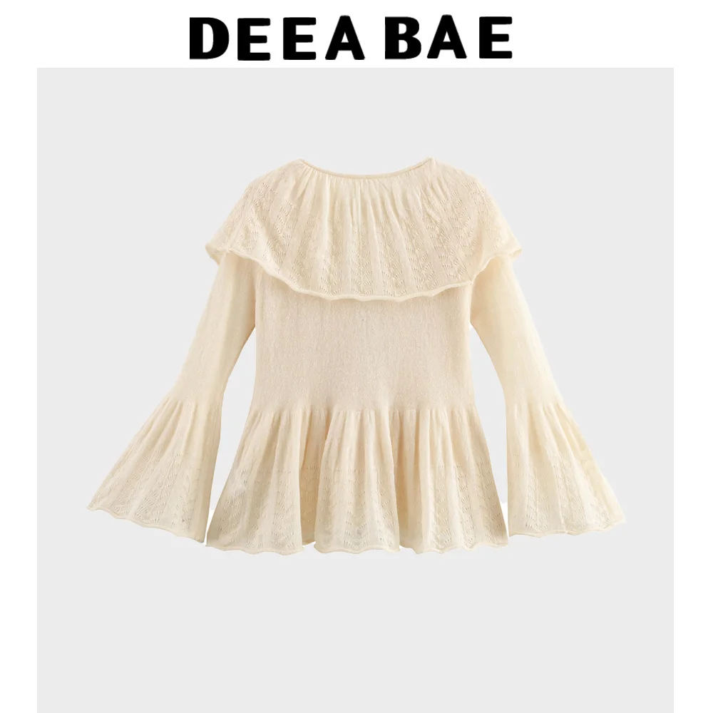 DEEABAE Spring New Women's Fashion New Knit Temperament Atmosphere Ruffled Trumpet Sleeve Round Neck Sweater Female Clothing