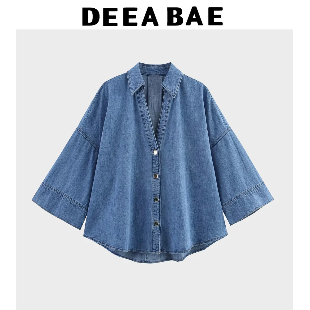 DEEABAE Spring New Women's Wide Sleeved Simple Casual Denim Shirt Fashionable Straight Leg Denim Suit