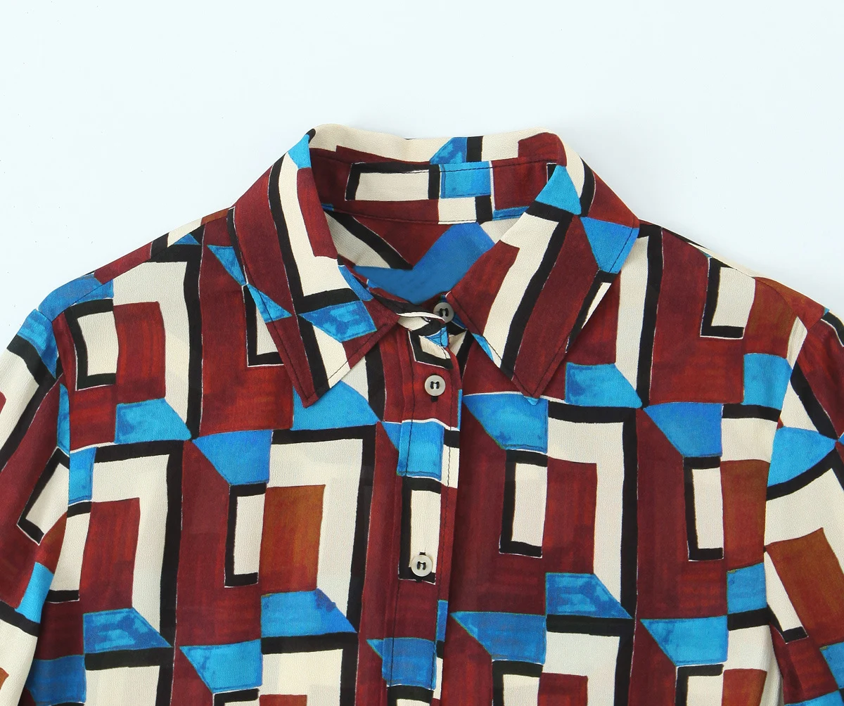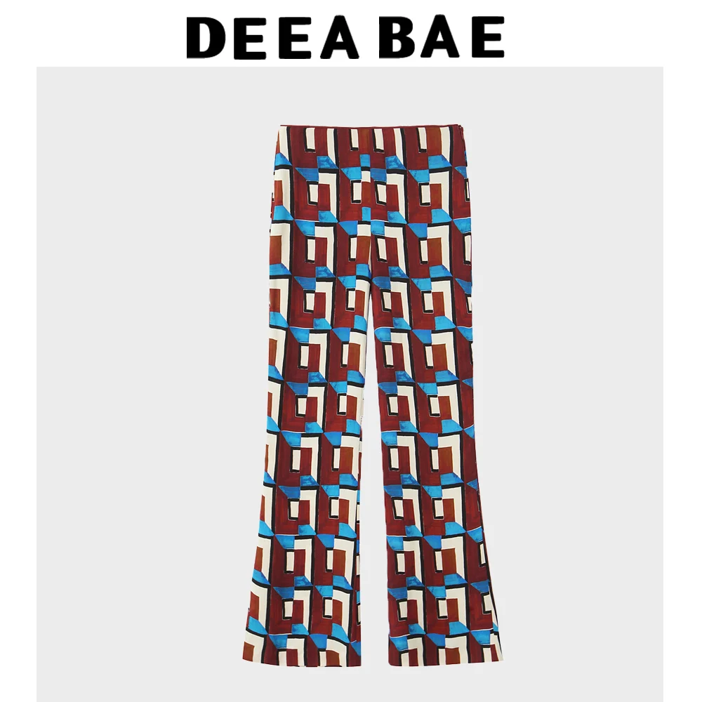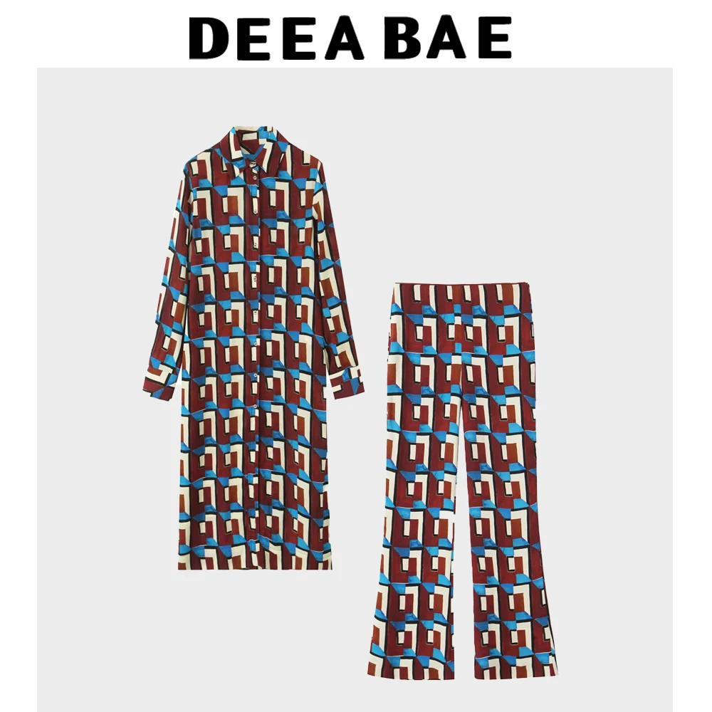 DEEABAE Spring Temperament Fashionable Printed Long Sleeved Lapel Long Shirt Fashionable Printed Casual Flared Pants