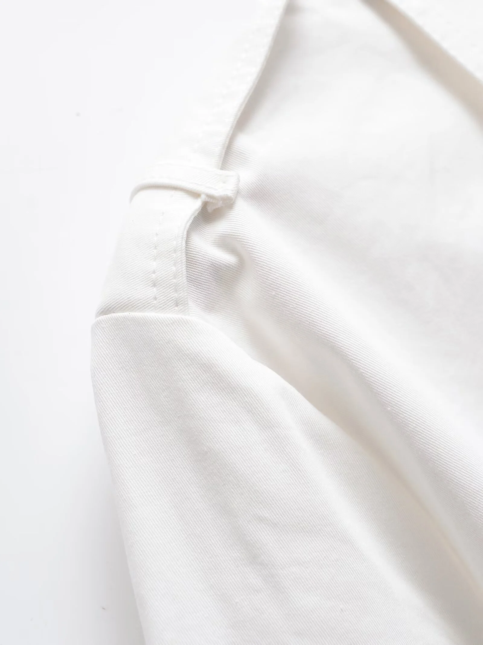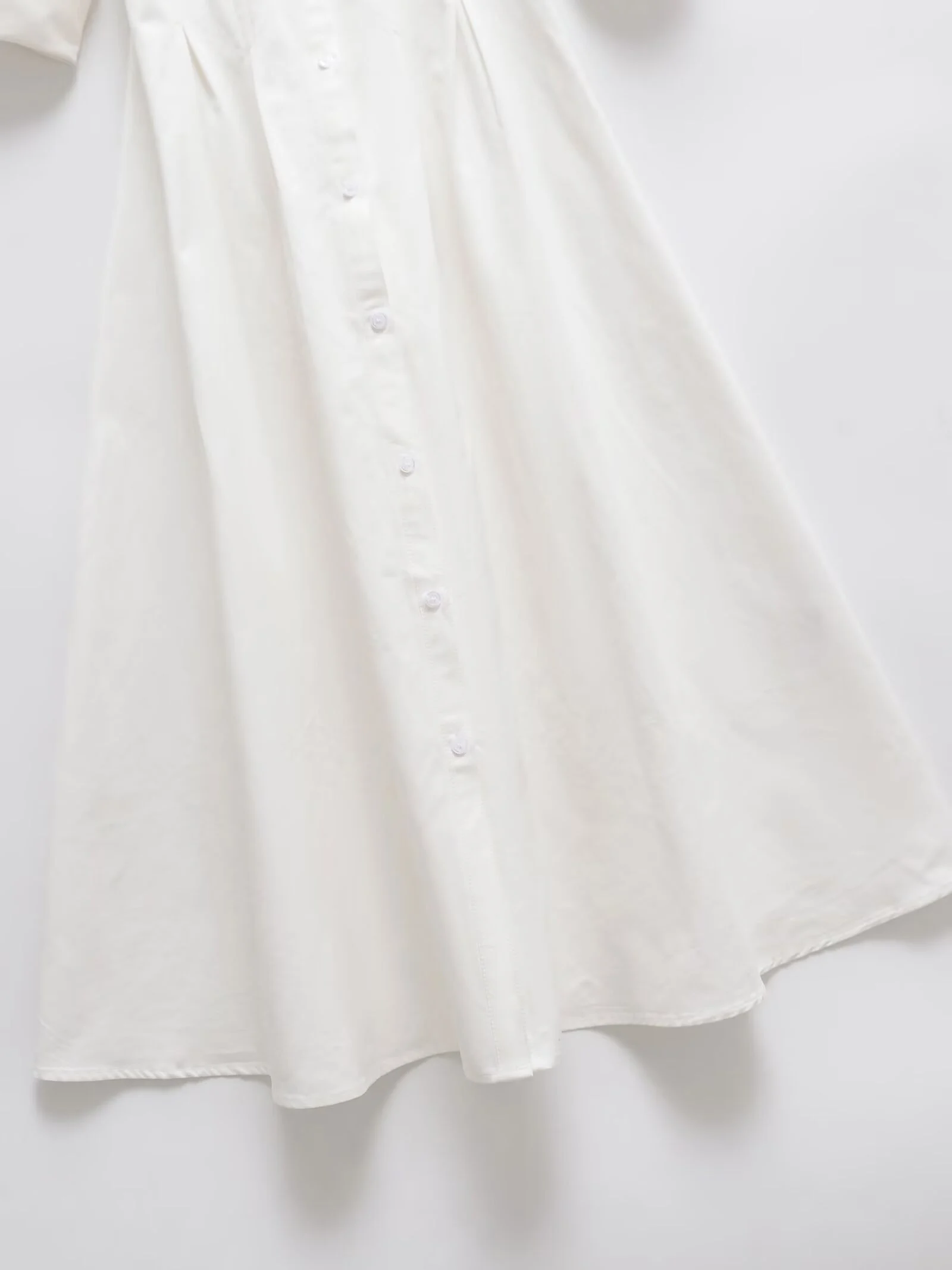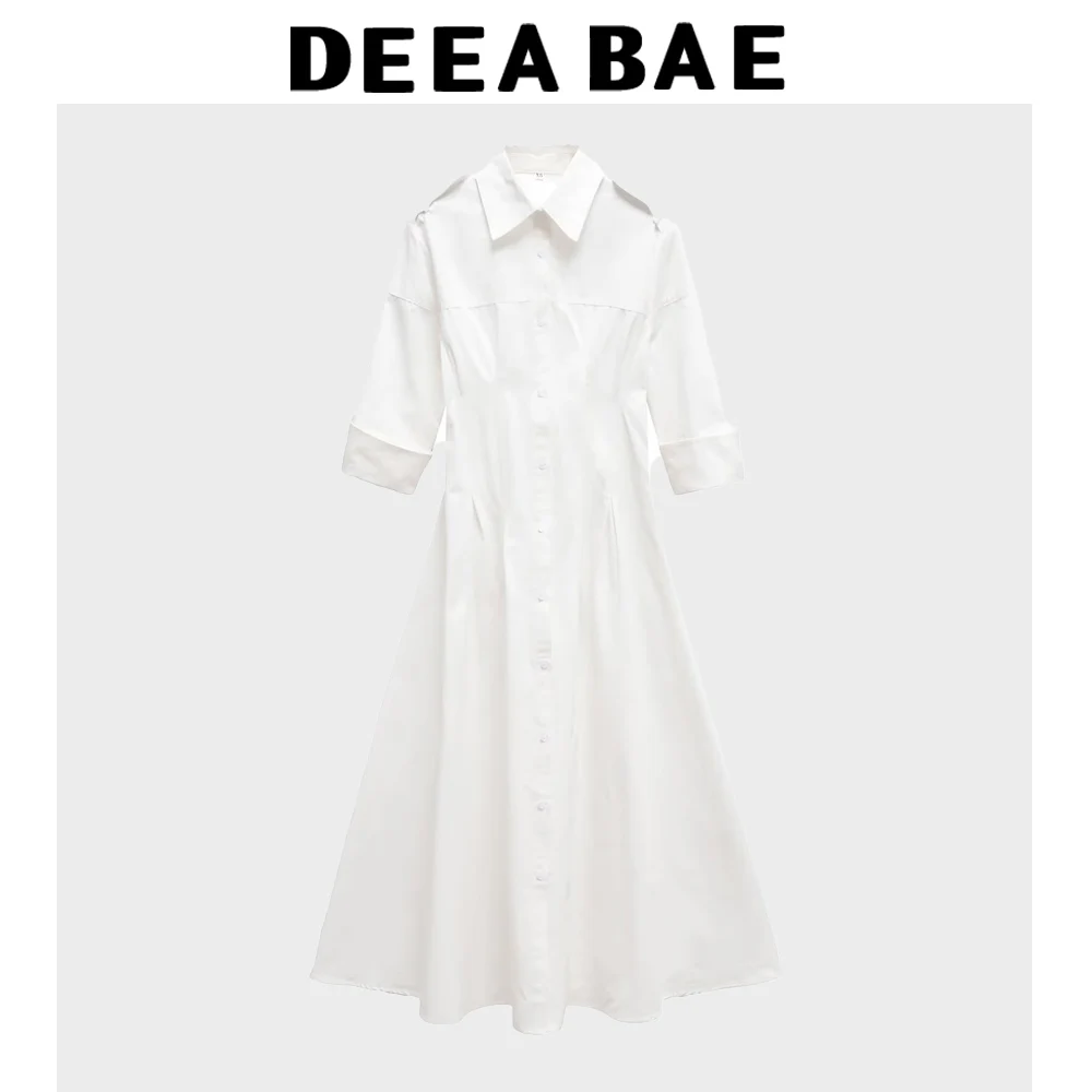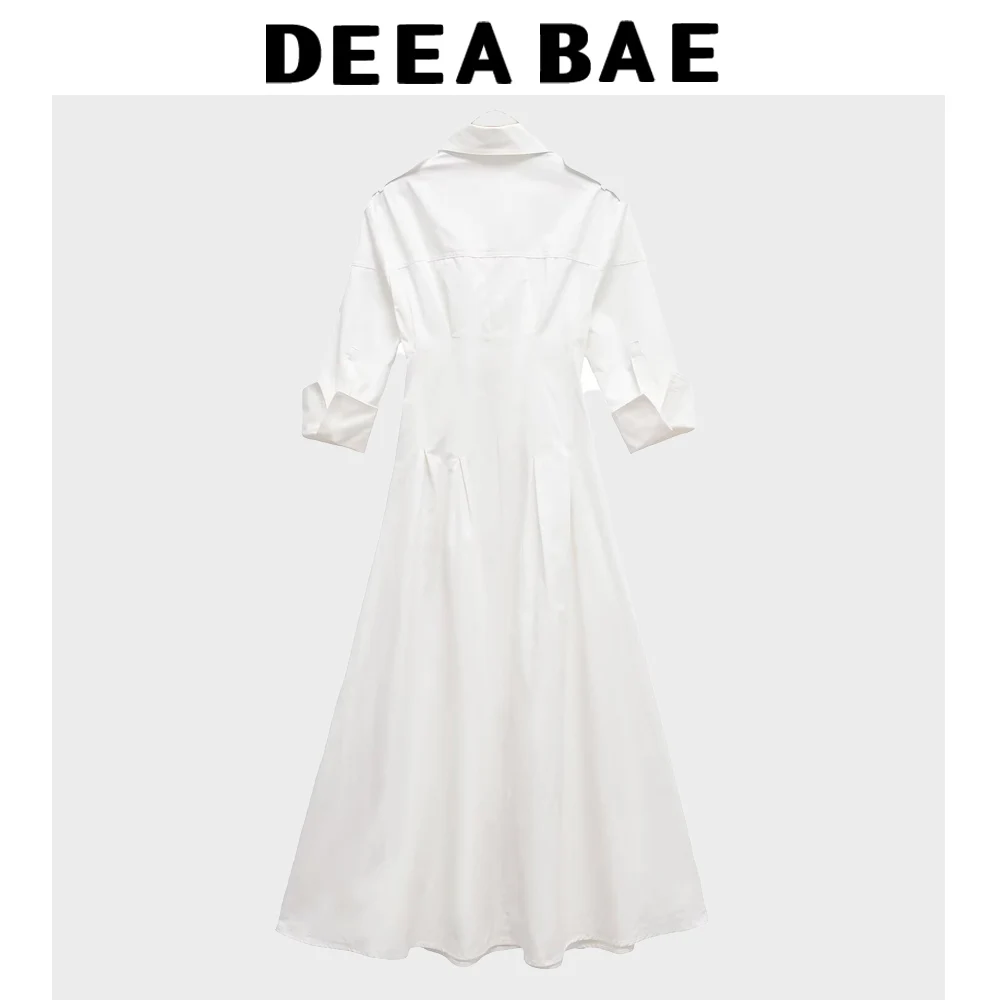 DEEABAE Spring Women’s Pleated Decorative Cotton Simple Temperament Short Sleeved Lapel MIDI Dress