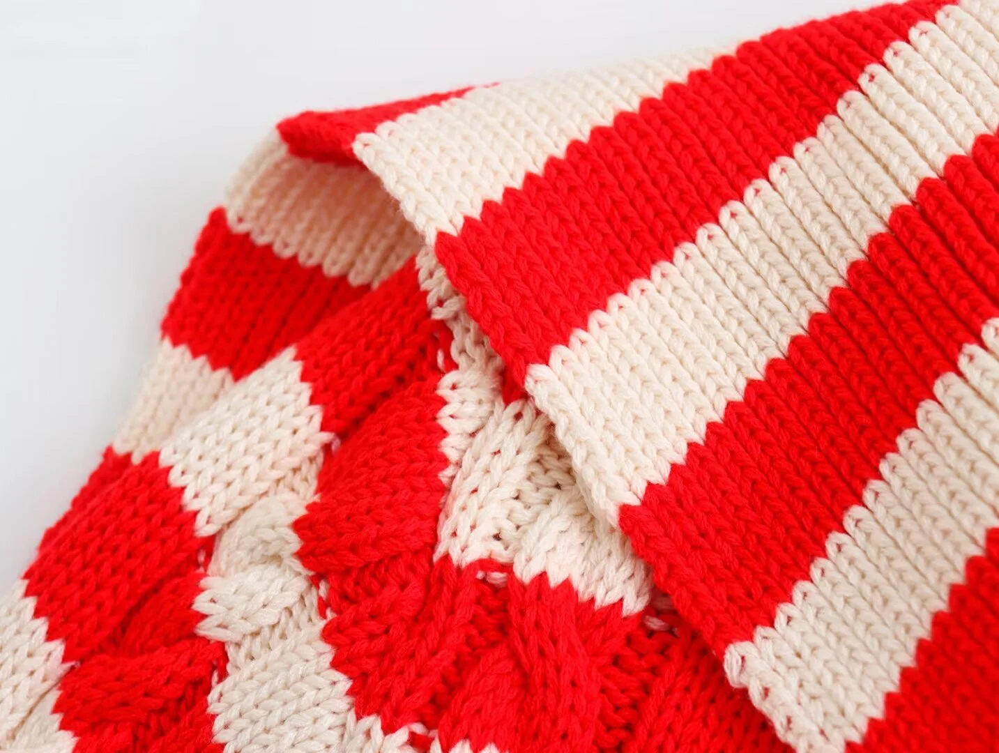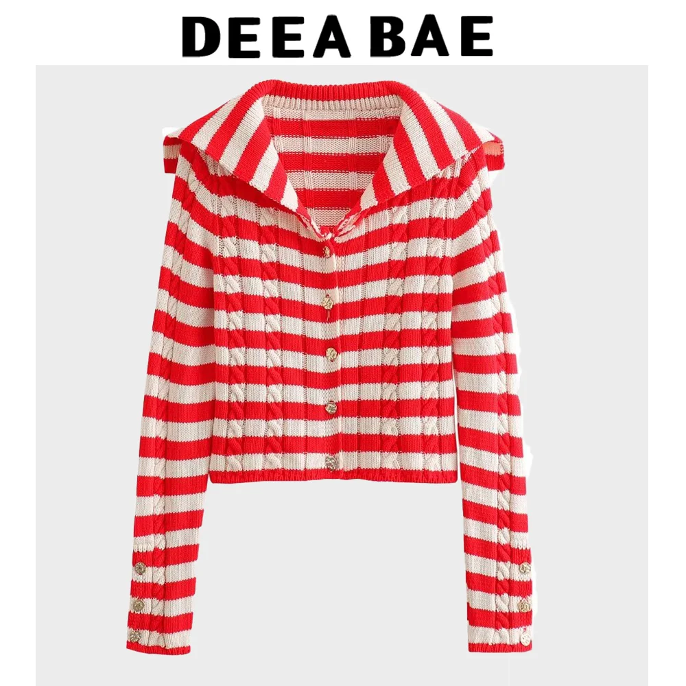 DEEABAE Spring Women's Wear Sweet Style Lapel Knitted Striped Sweater Fashionable And Versatile Eight-strand Knitted Cardigan
