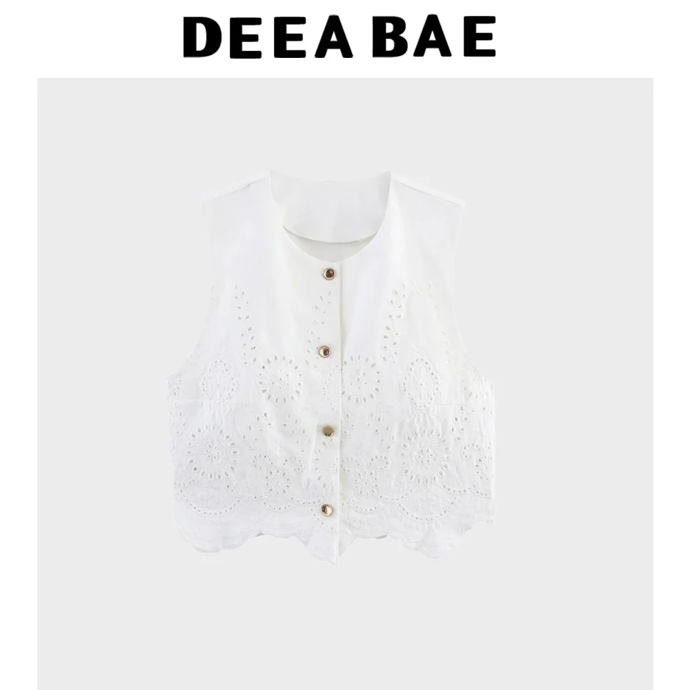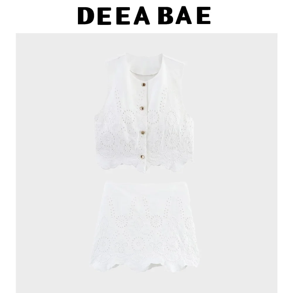 DEEABAE Summer 2025 new women’s clothing European and American hollow embroidery vest style top and skirt pants set