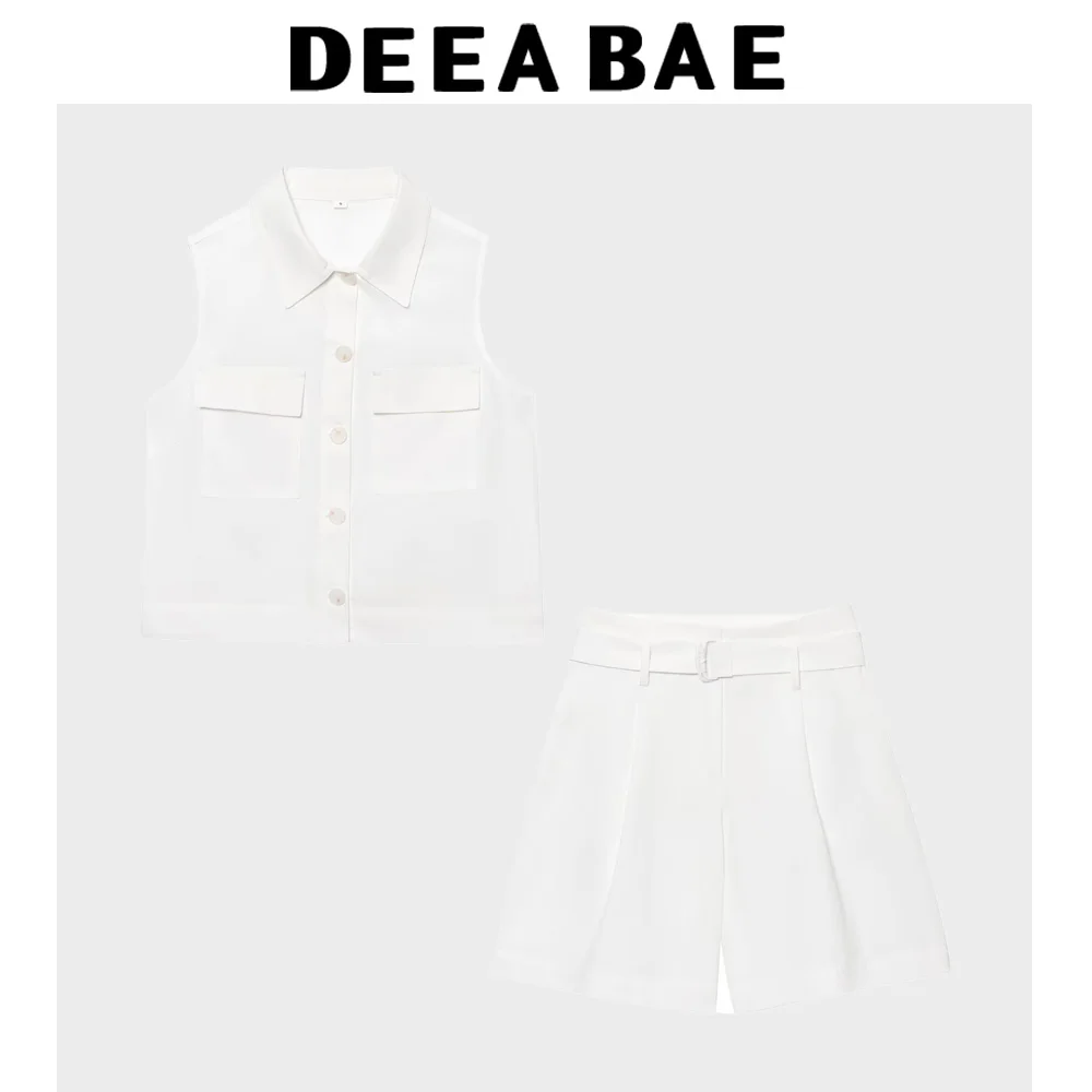 DEEABAE Summer 2025 New Women’s Clothing European And American Patch Pocket Vest With Belt Casual Shorts Set