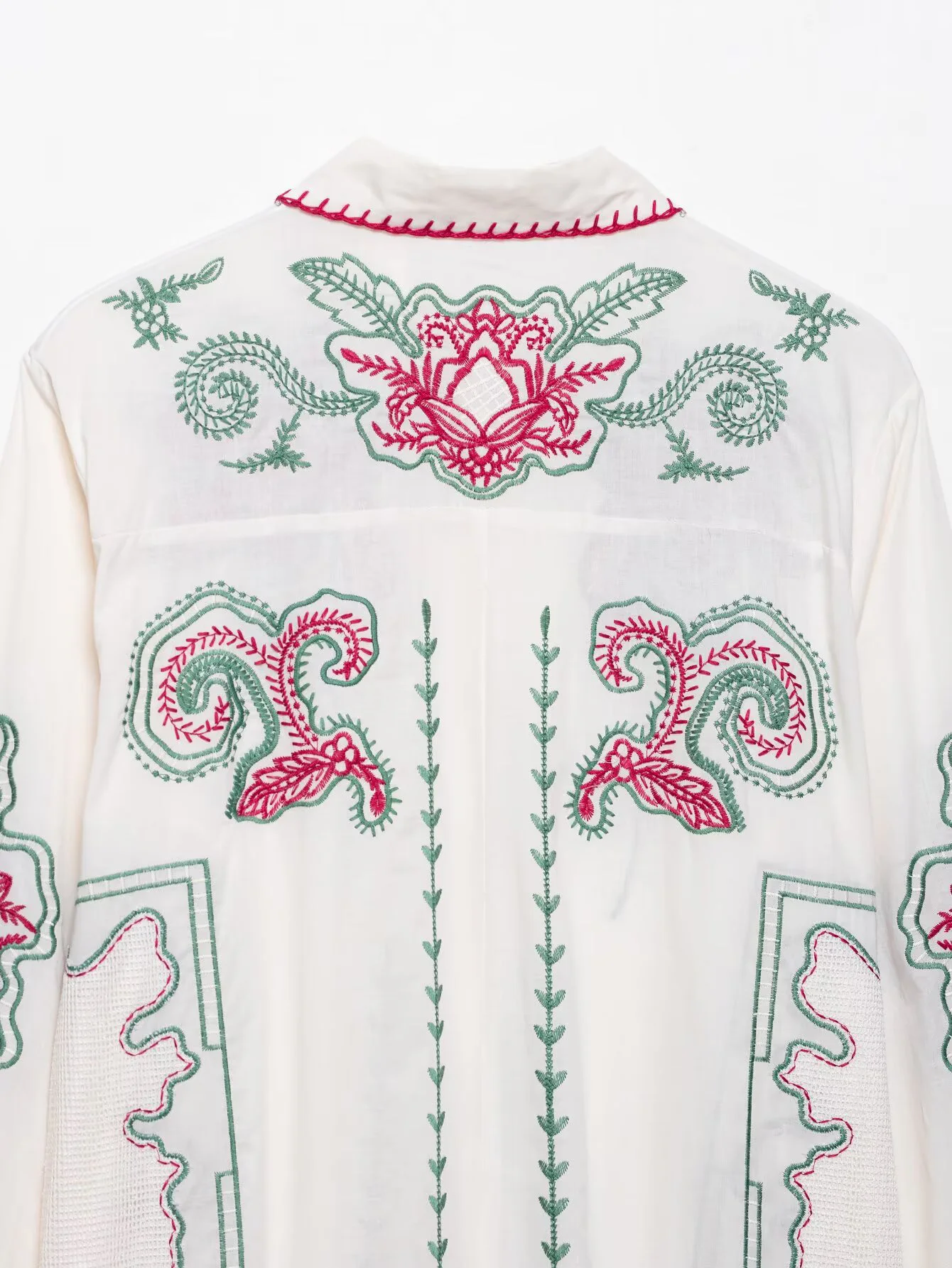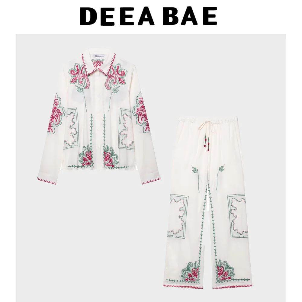 DEEABAE Summer 2025 New Women's Clothing European and American Style Fashion Embroidered Shirt Embroidered Pants Set