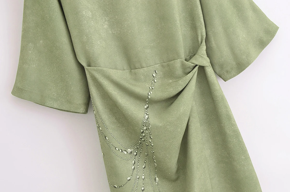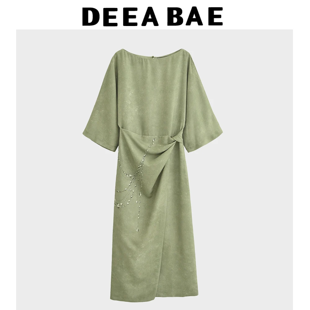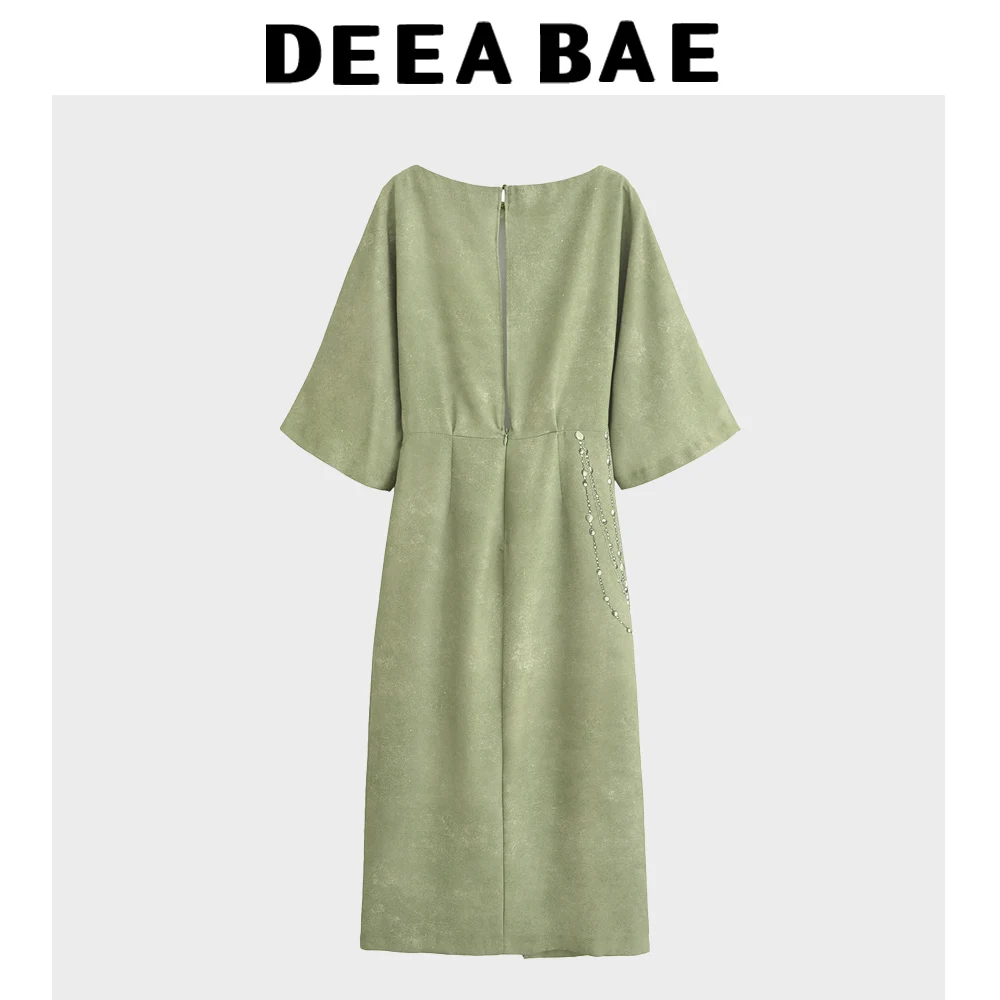 DEEABAE Summer Chain Print Modern Wide Round Neck MIDI Dress High-end Light Luxury Temperament Dignified And Atmospheric Dress