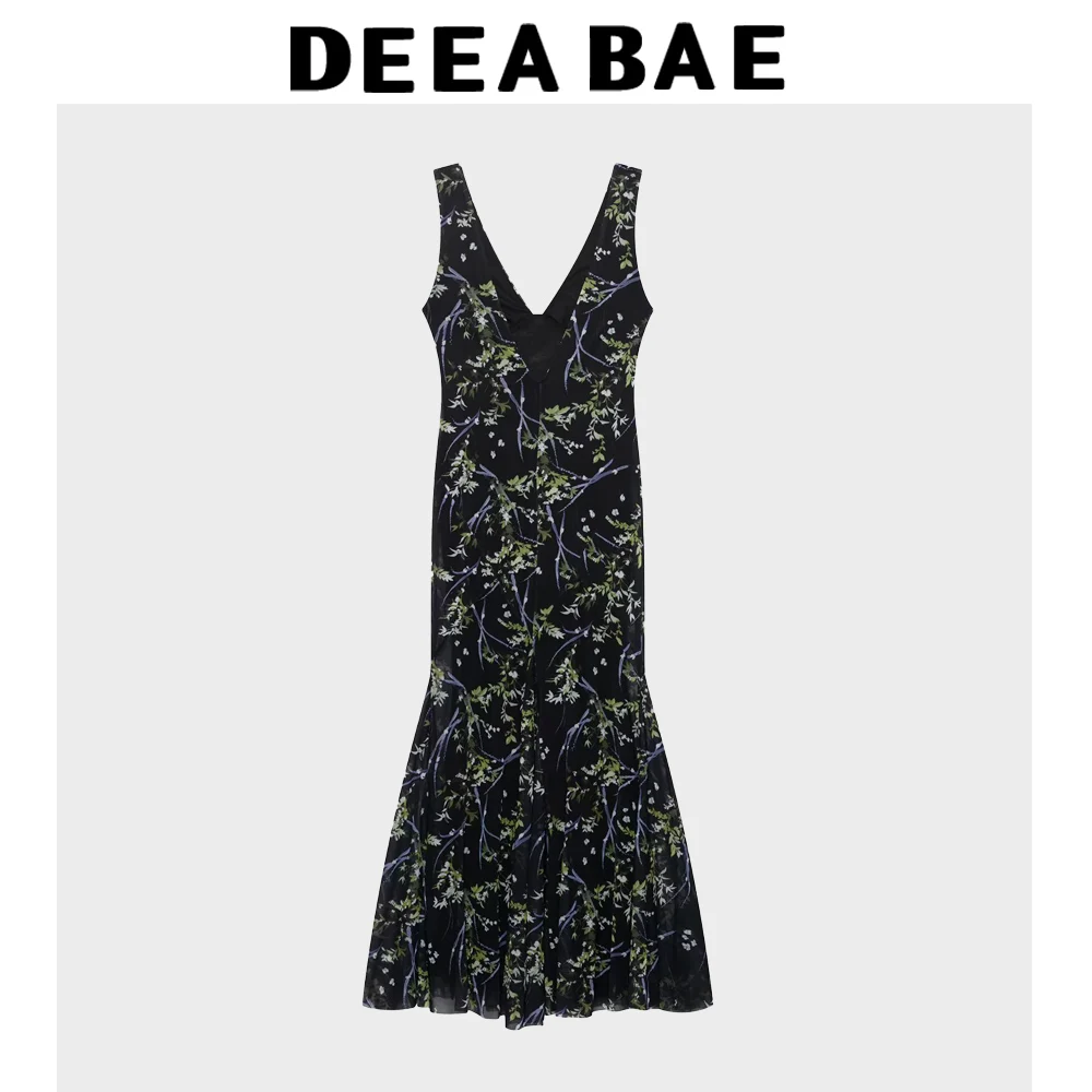 DEEABAE Summer New Floral V-neck Dress For Women White And Thin Versatile And Stylish With Arm Length Skirt