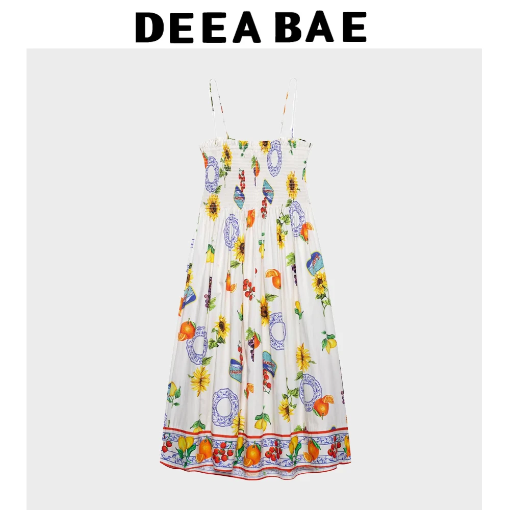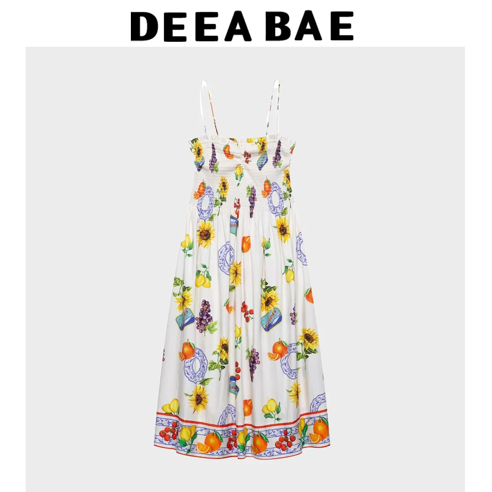 DEEABAE Summer New Product Seaside Vacation Style Slim Strap Wave Play Style Small Fresh Floral Dress Women’s Wear
