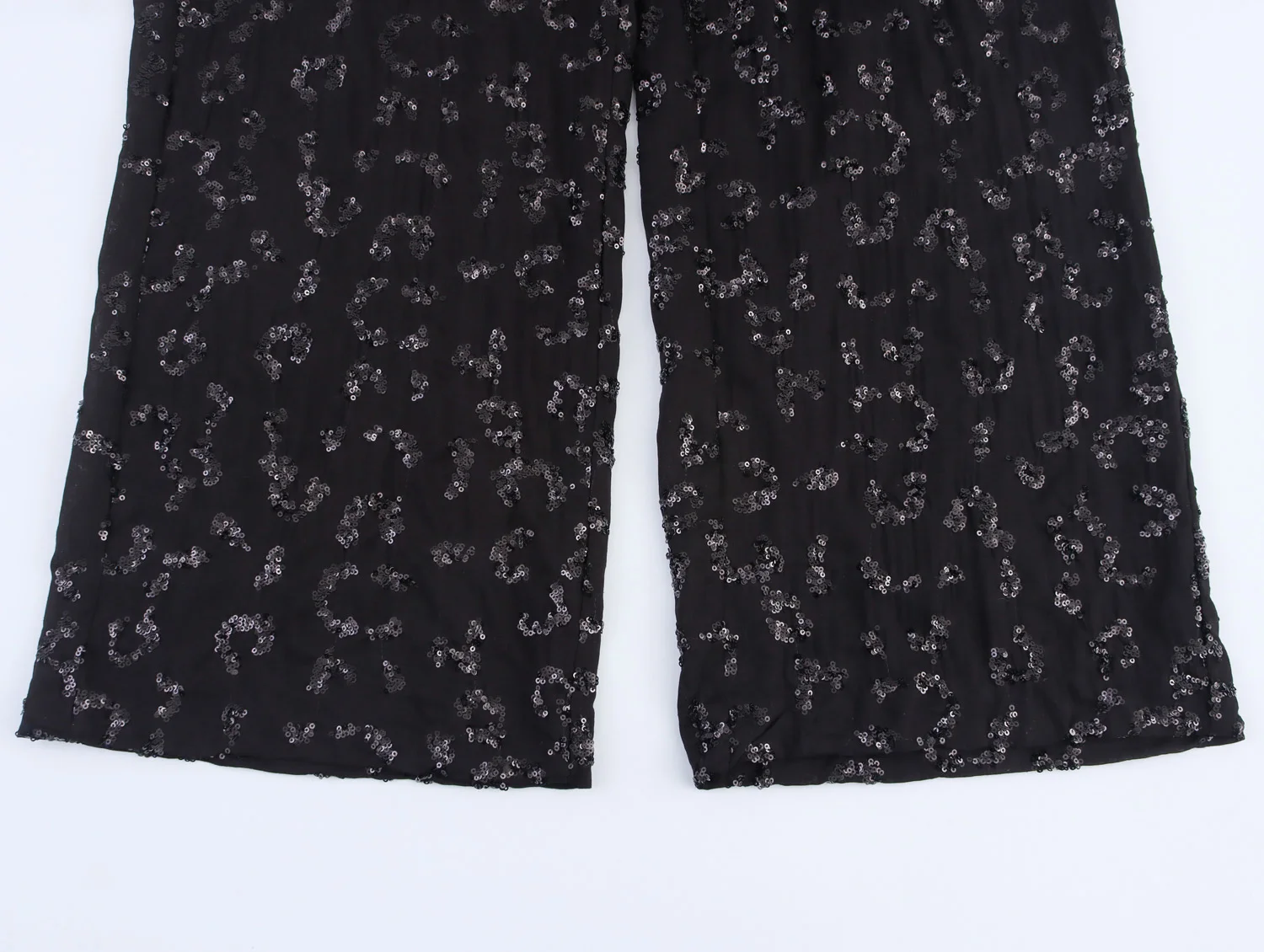 DEEABAE Summer New Product Women's Bead Decorative Tank Top Off Shoulder Straight Collar Top High Waist Loose Casual Pants Set