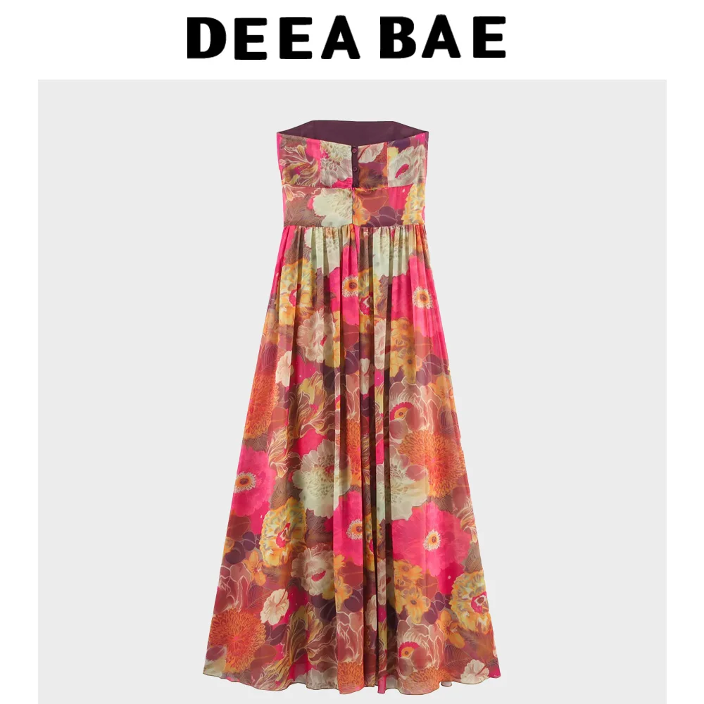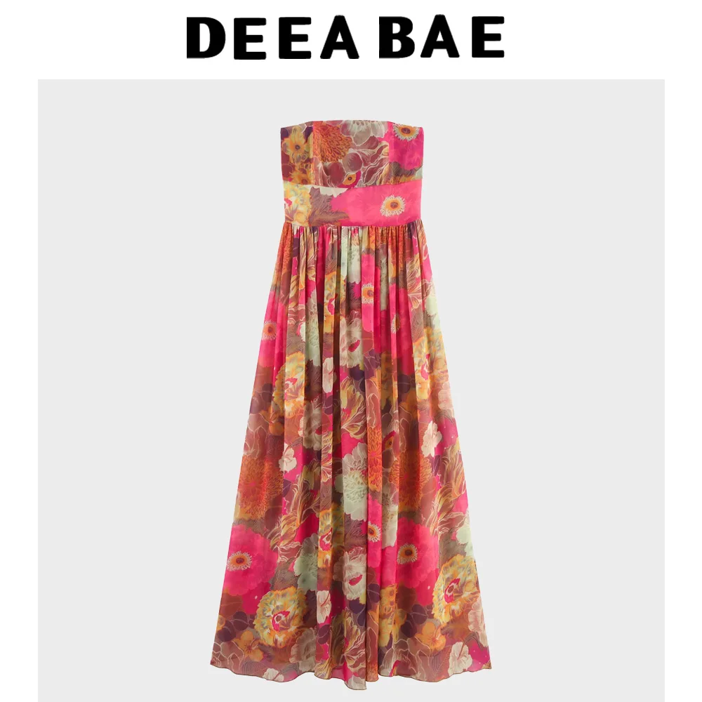 DEEABAE Summer New Product Women’s Seaside Vacation Style Stylish Printed Off Shoulder Straight Collar Dress