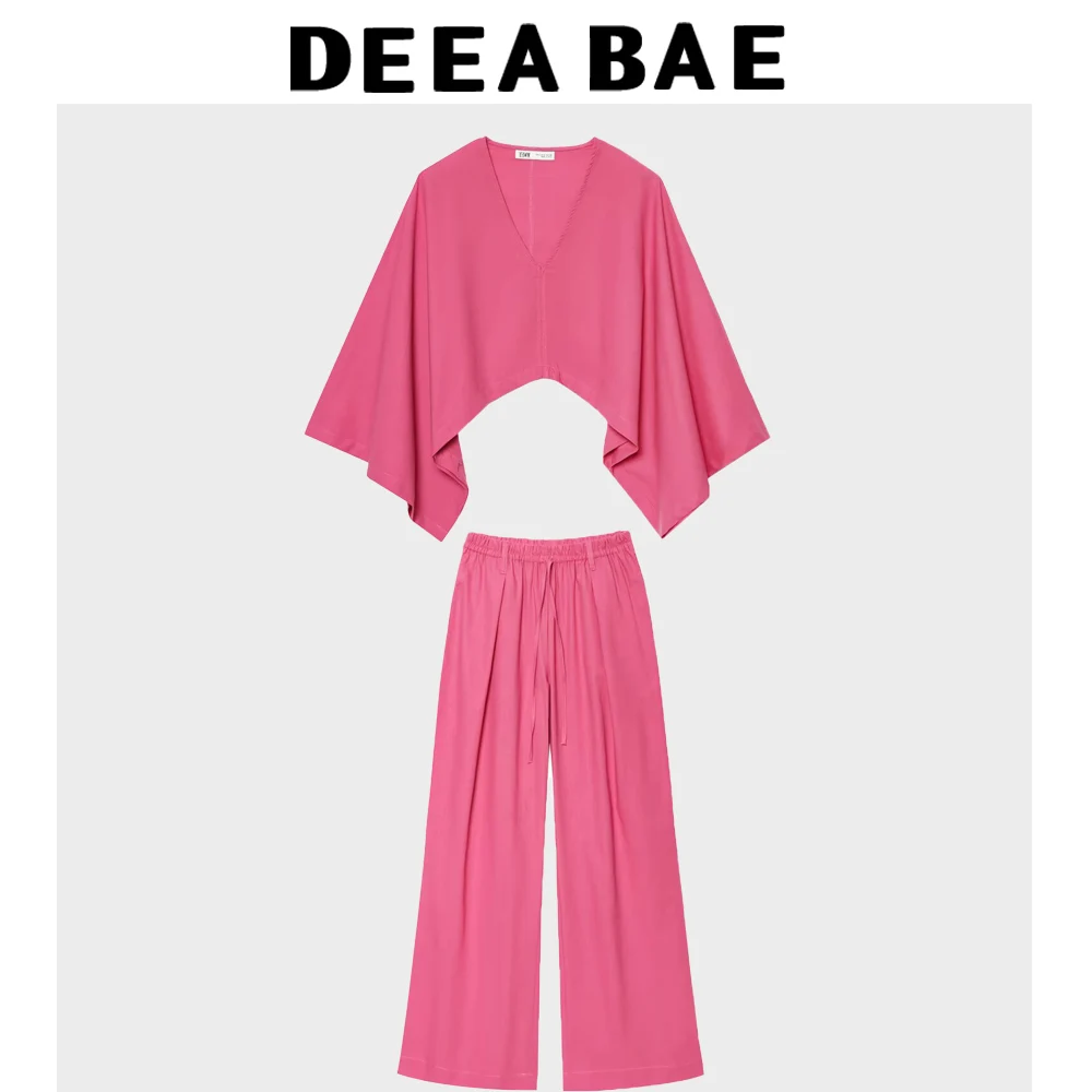 DEEABAE Summer New Product Women’s Vacation Lazy Waist Blended Cape Wide Sleeve Long Sleeve Shirt Top Casual Pants Set