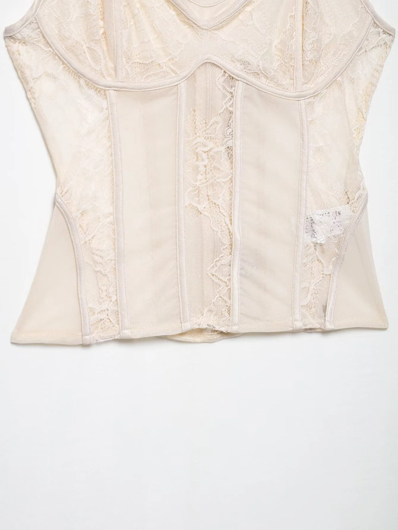 DEEABAE Summer New Product Women’s Versatile Fishbone French Lace Tight Corset Top Beautiful And Slimming Fishbone Style Strap