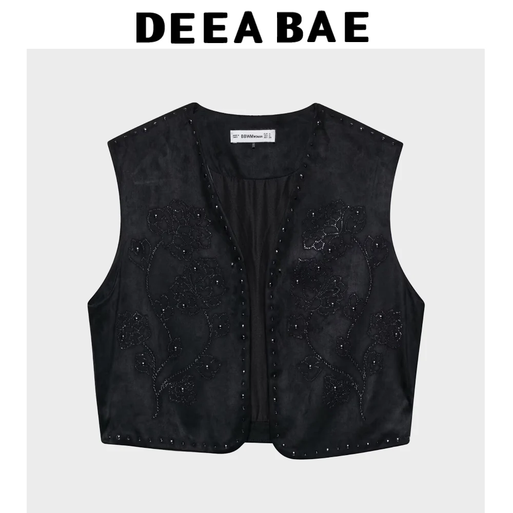 DEEABAE Summer New Sleeveless Tank Top And Camisole Top For Outerwear Open Collar Contrasting Color Embroidered Vest
