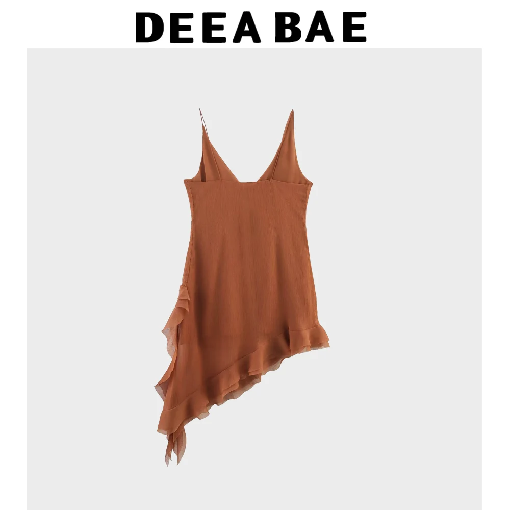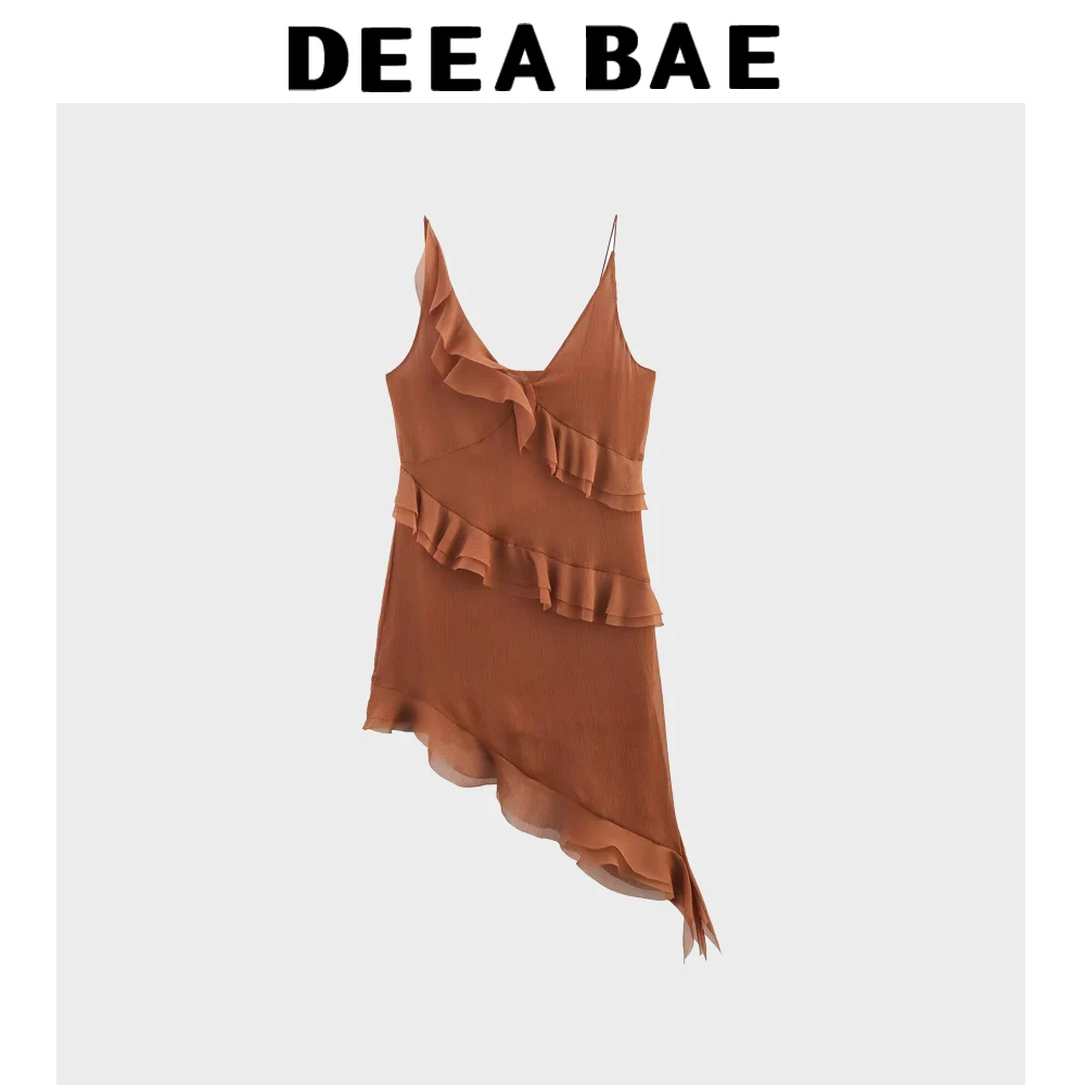DEEABAE Summer New Style Sweet Vacation Style Asymmetric Layered Decoration V-neck Strap Dress