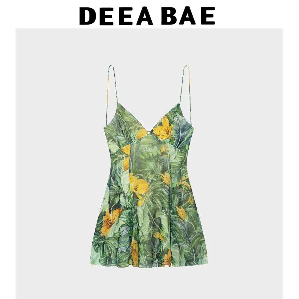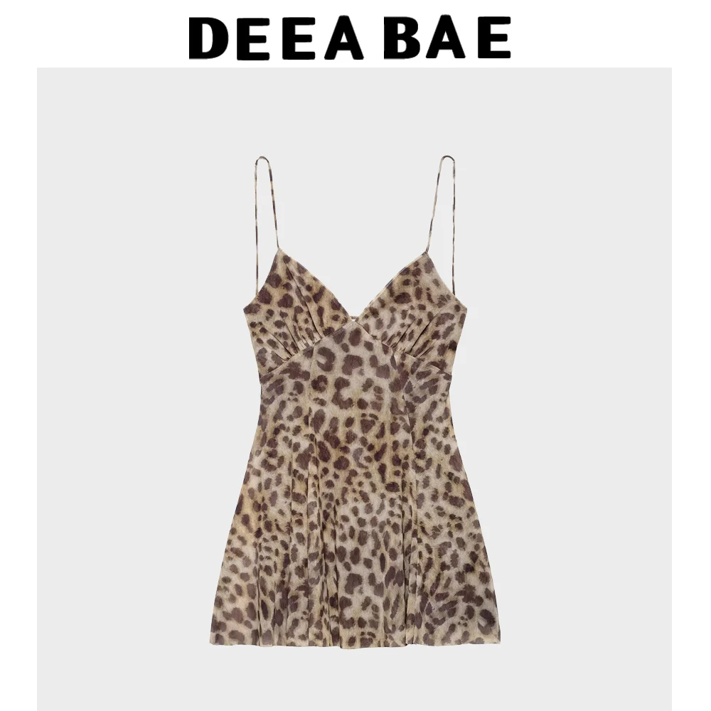 DEEABAE Summer New Sweet And Spicy Leopard Print Silk Mesh V-neck Backless Camisole Dress For Women