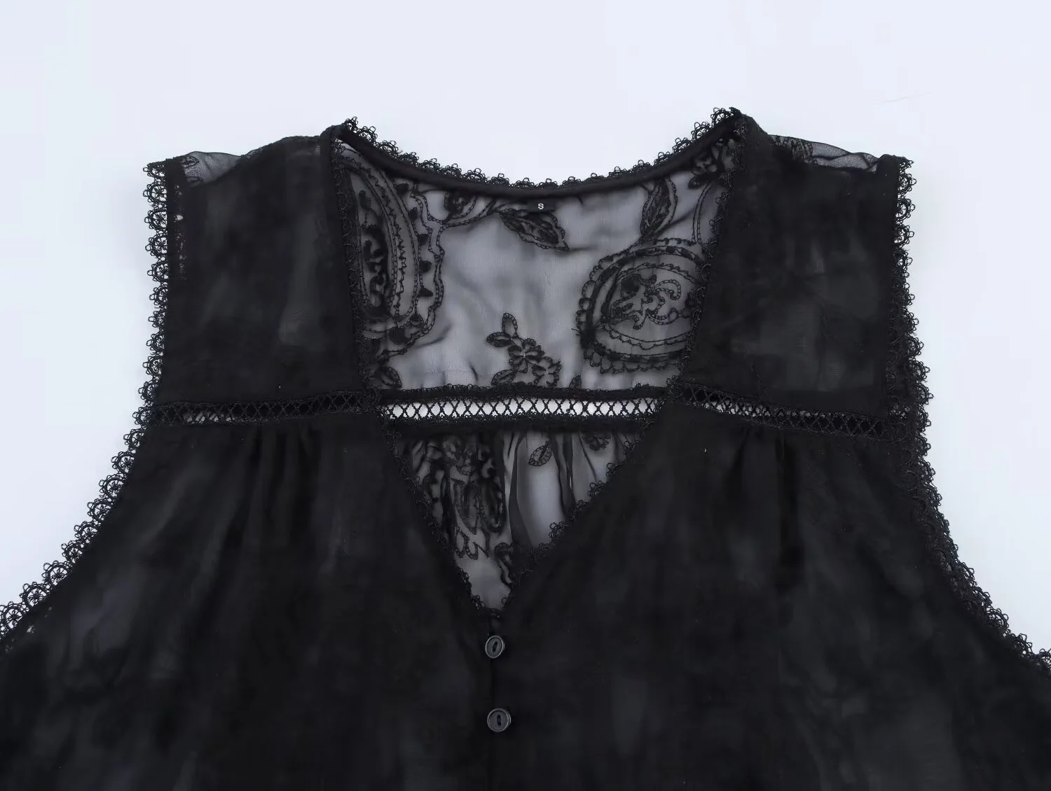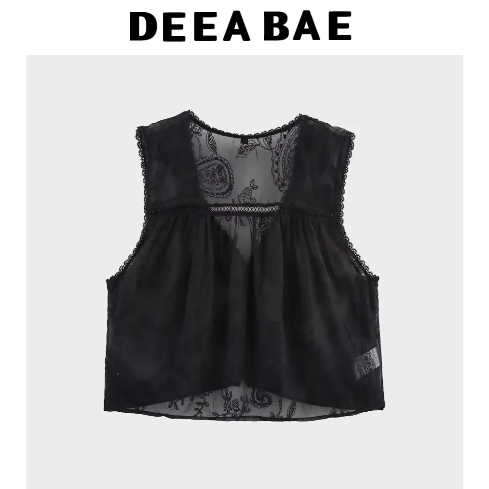 DEEABAE Summer new sweet and spicy style loose V-neck sleeveless hollowed out embroidered vest shirt for women