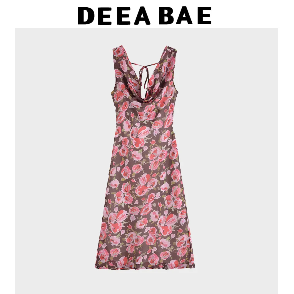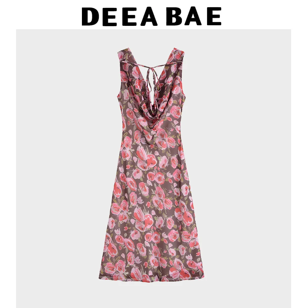 DEEABAE Summer New Women’s Clothing European And American Style Elegant Slim Fit Pile Collar Printed Long Dress