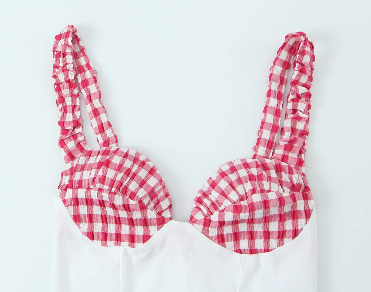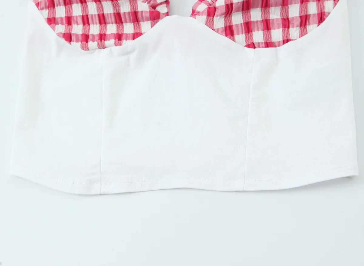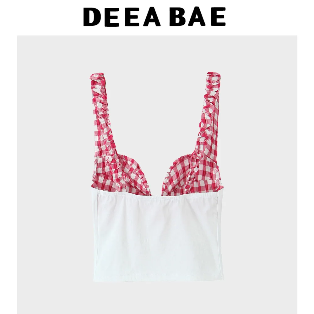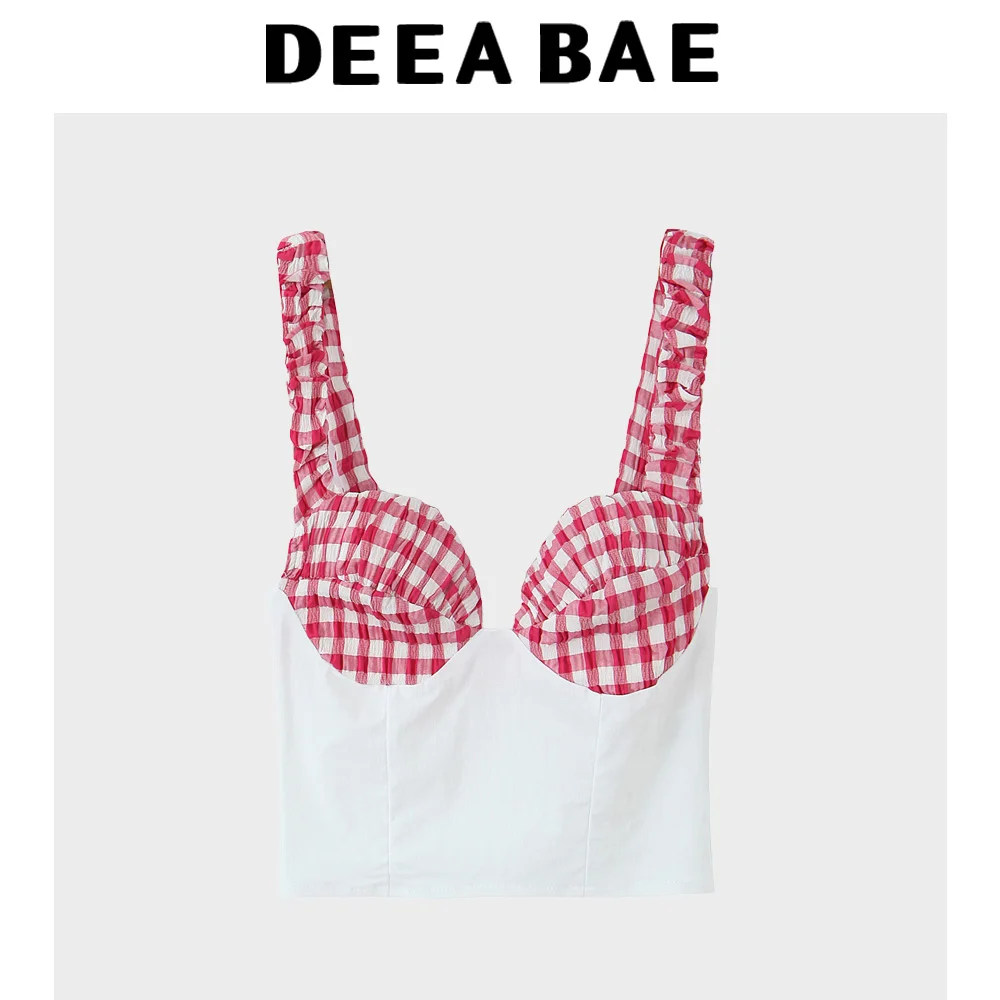 DEEABAE Summer new women’s clothing European and American style fashionable small plaid corset style top