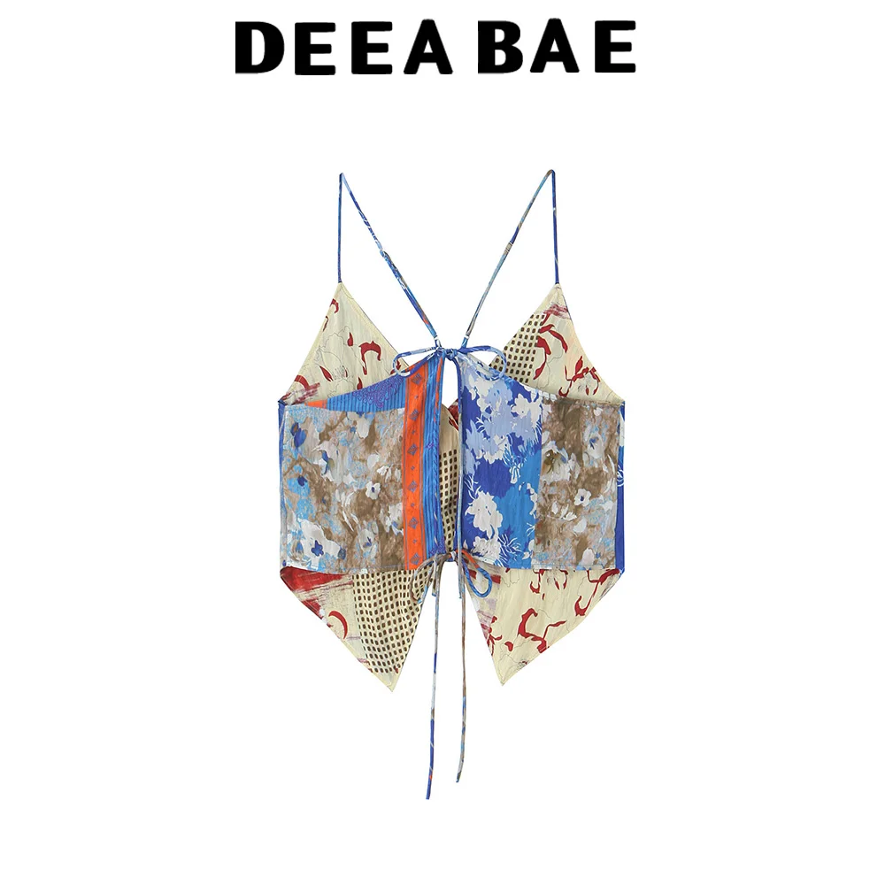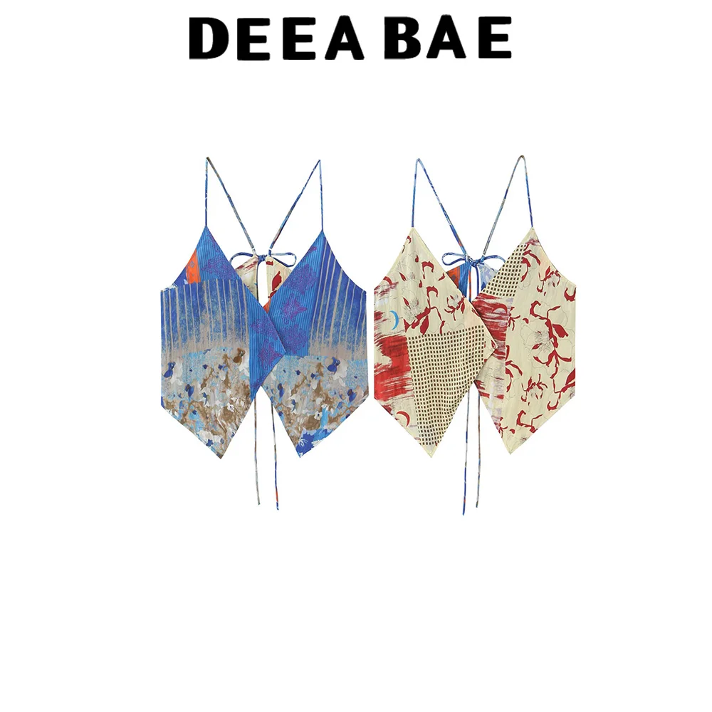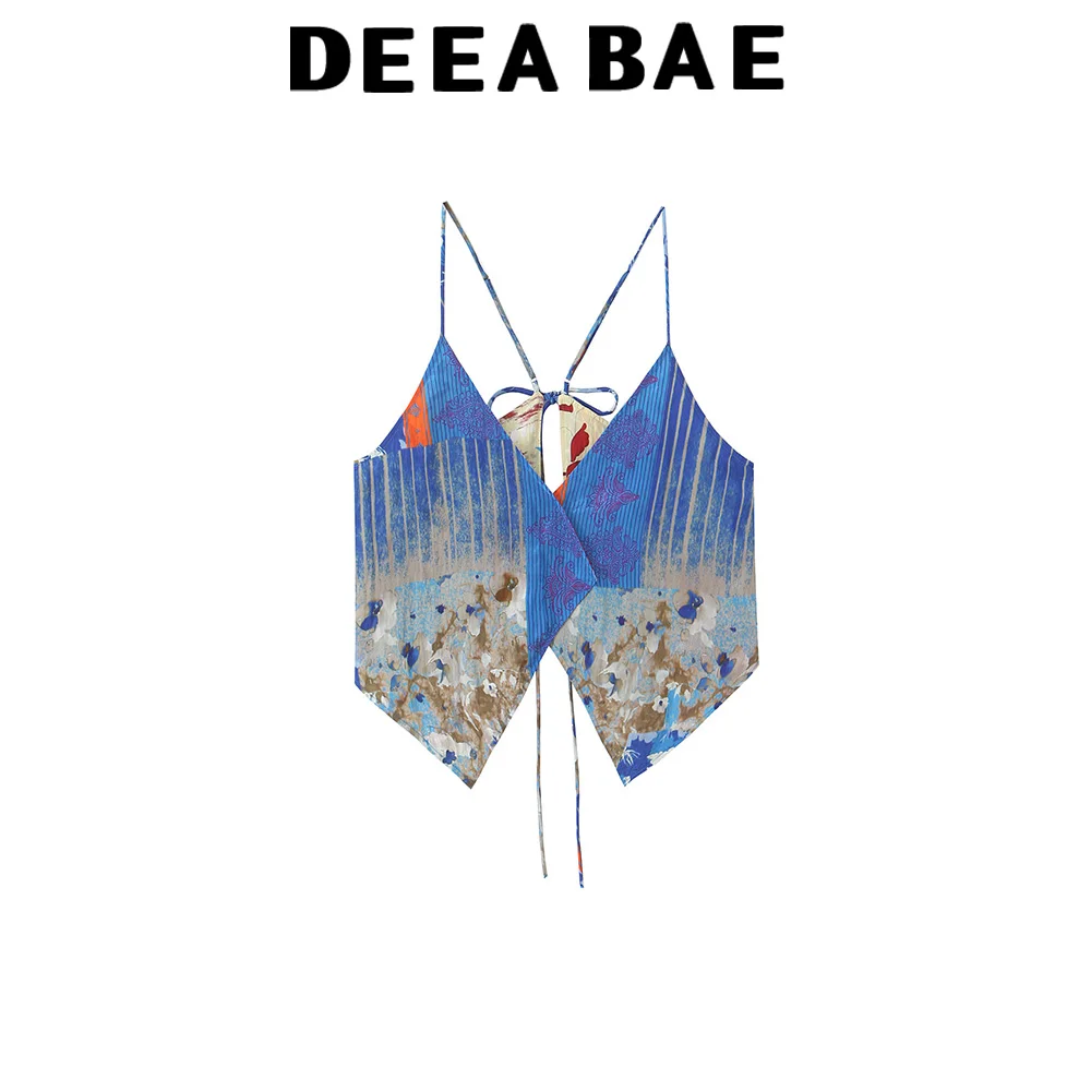 DEEABAE Summer new women’s clothing European and American style French fashion double-sided asymmetrical printed top