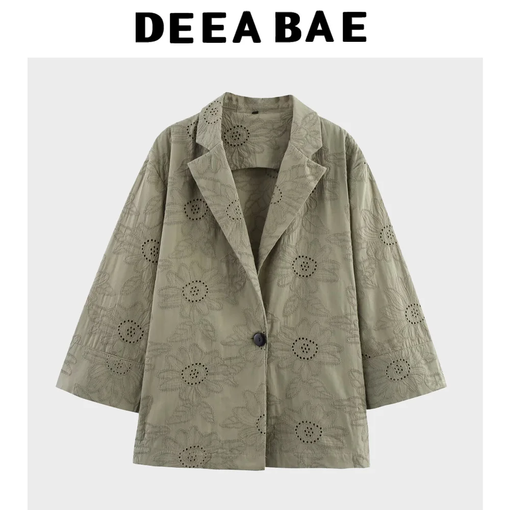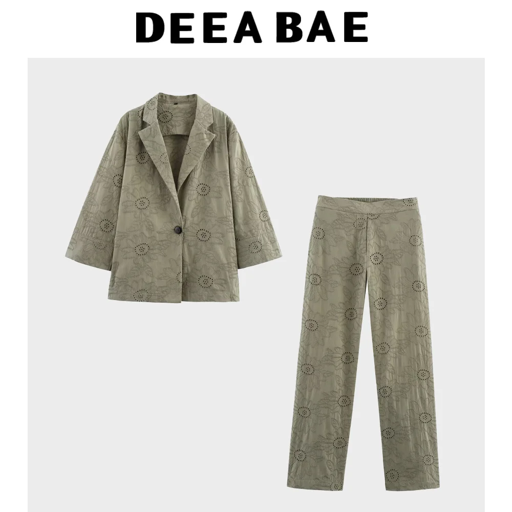 DEEABAE Summer new women's clothing European and American style hollow embroidery suit jacket straight leg pants set