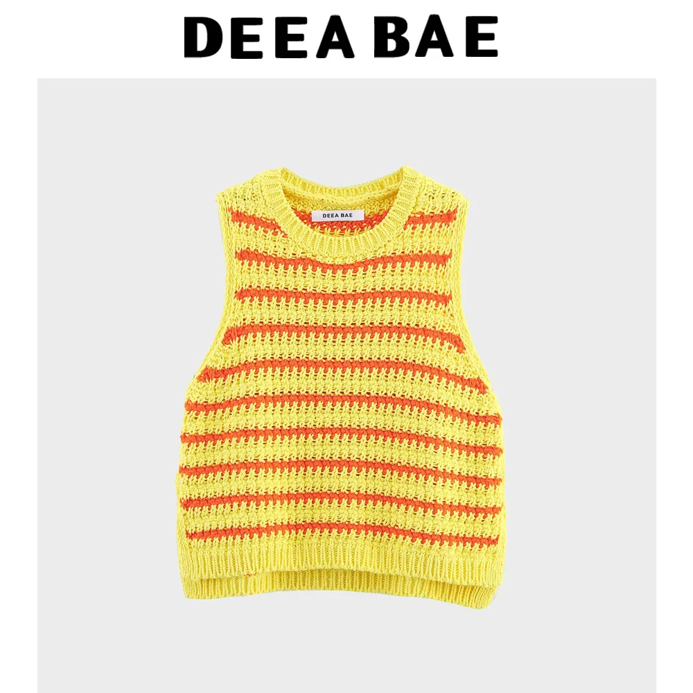 DEEABAE Summer new women's clothing European and American style striped round neck sleeveless knitted top