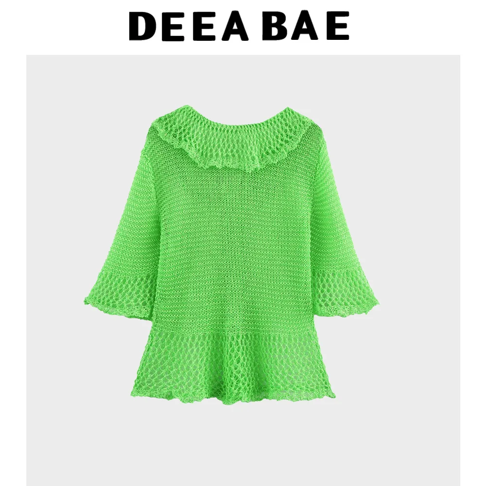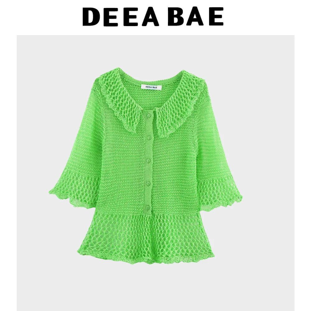 DEEABAE Summer new women's clothing fashionable temperament versatile lapel short sleeved hollow fashion knitted jacket