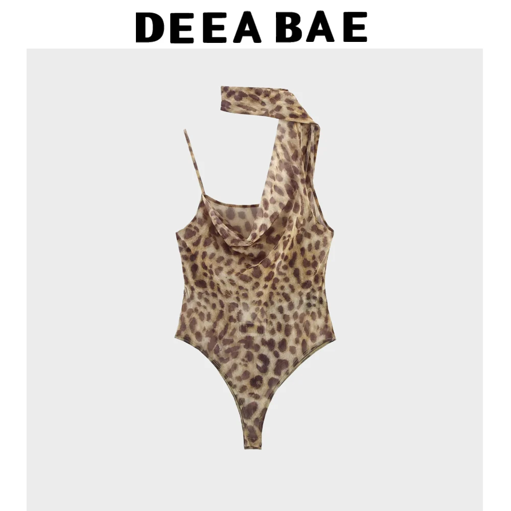 DEEABAE Summer New Women’s Clothing Fashionable Temperament Western Style Printed Silk Mesh Scarf With Pleated Collar Jumpsuit