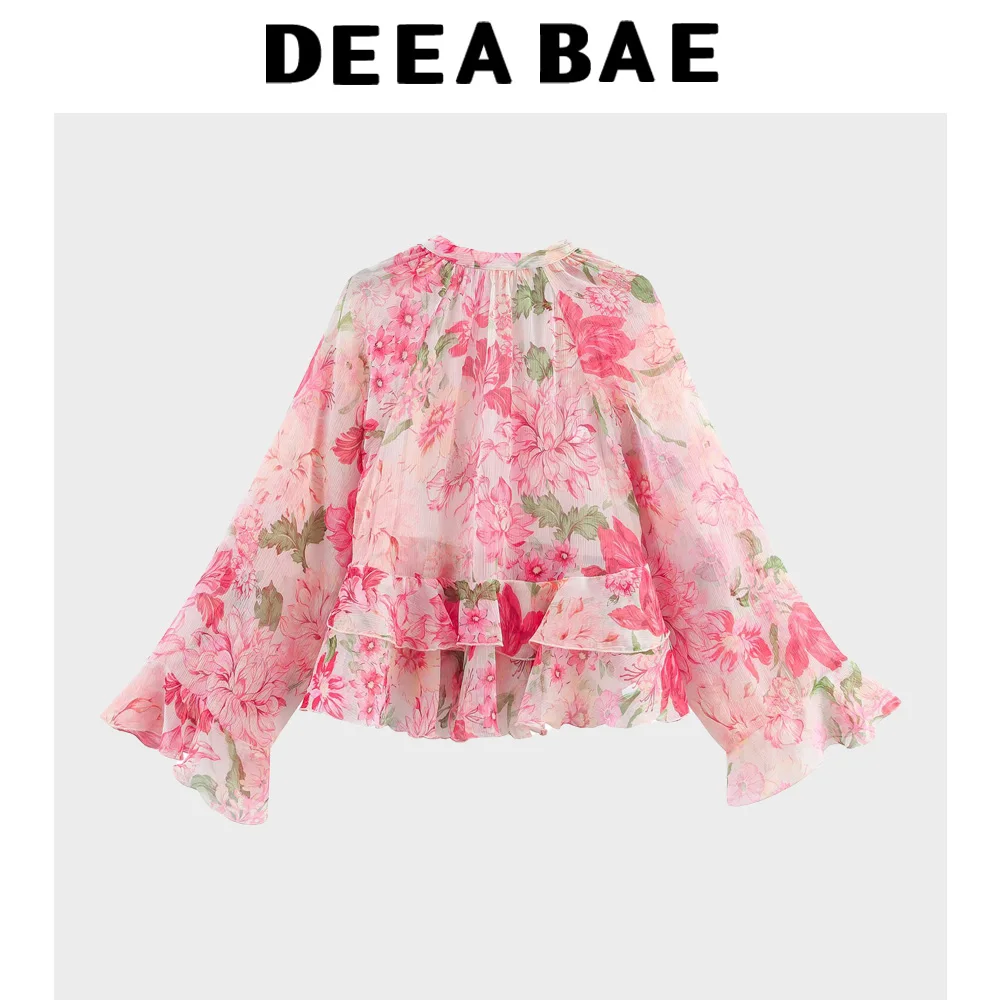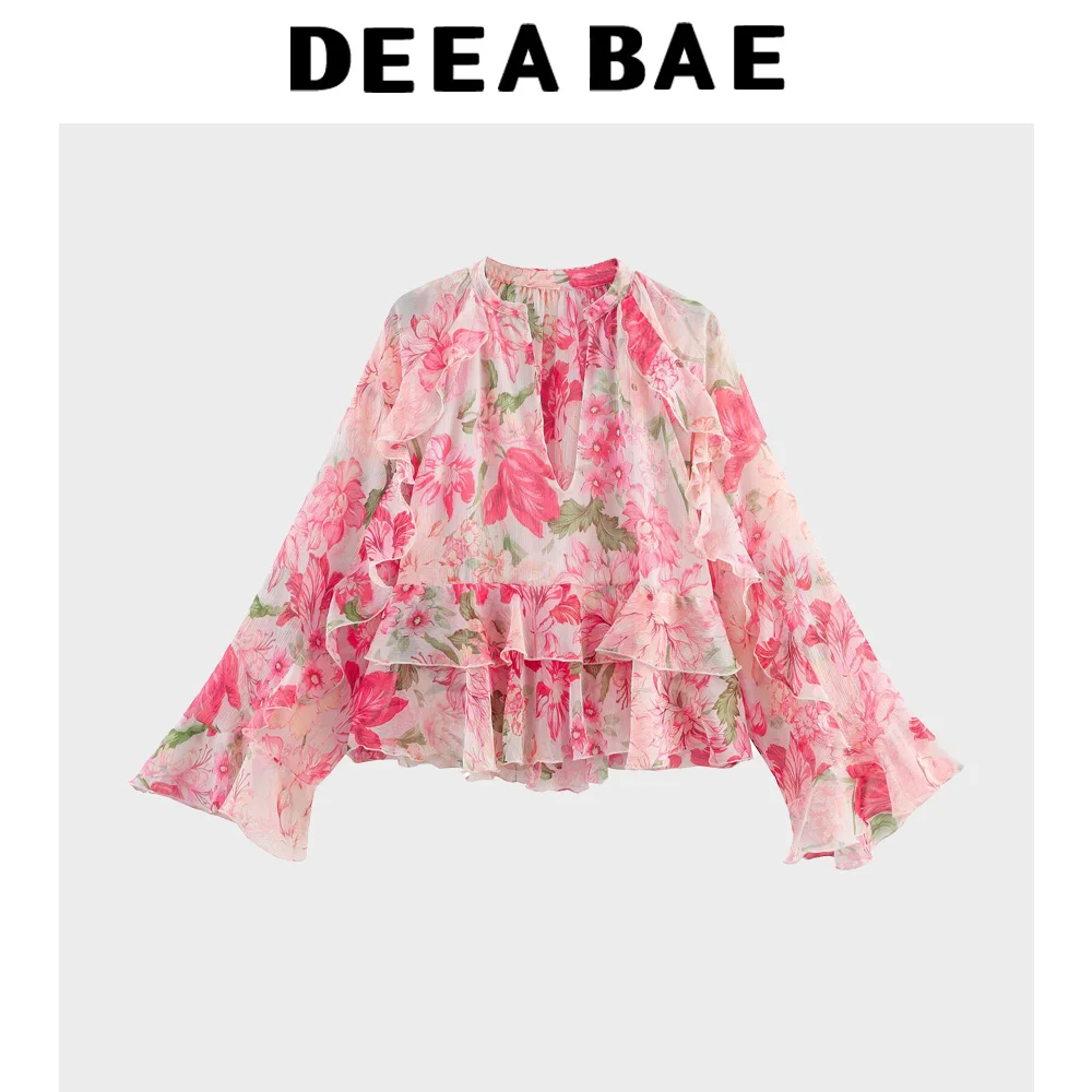 DEEABAE Summer New Women’s Clothing Sweet Temperament Design Sense Fashionable Layered Decoration Printed Shirt