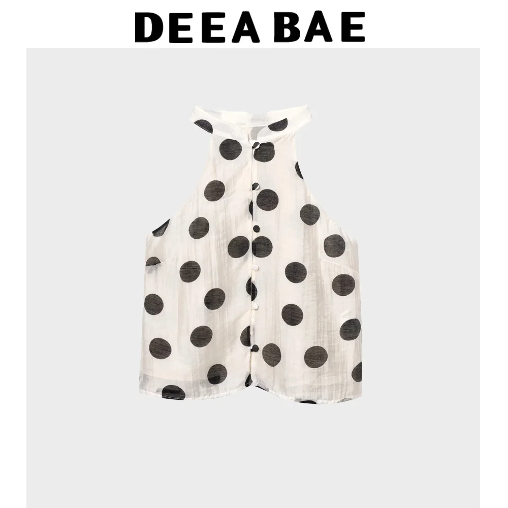 DEEABAE Summer New Women's Clothing Temperament Wave Point Hanging Neck Collar Temperament Short Top Shorts Set