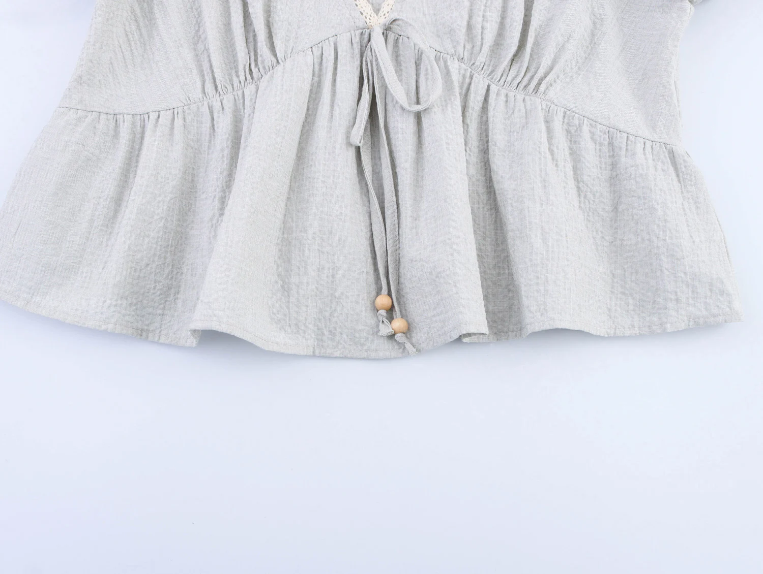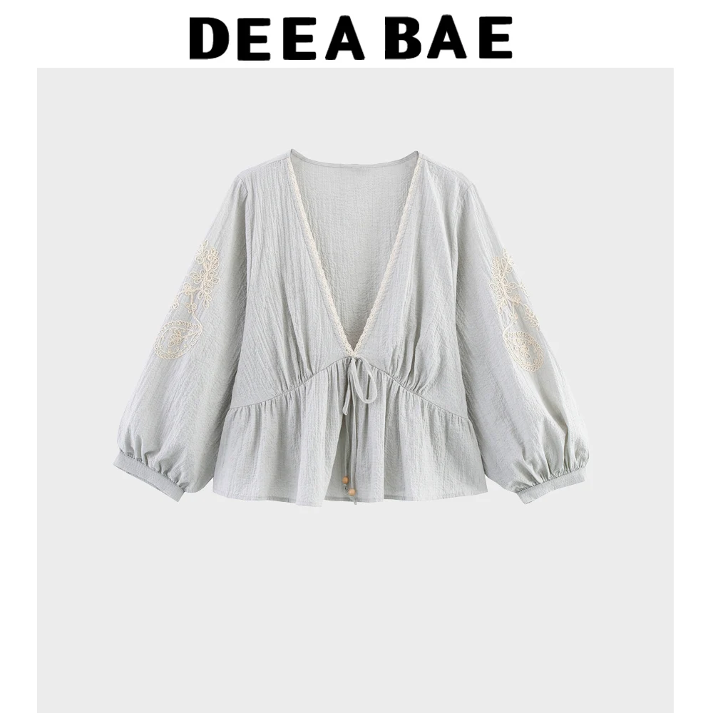DEEABAE Summer New Women’s Clothing Vacation Style Elegant Temperament Embroidered V-neck Short Top