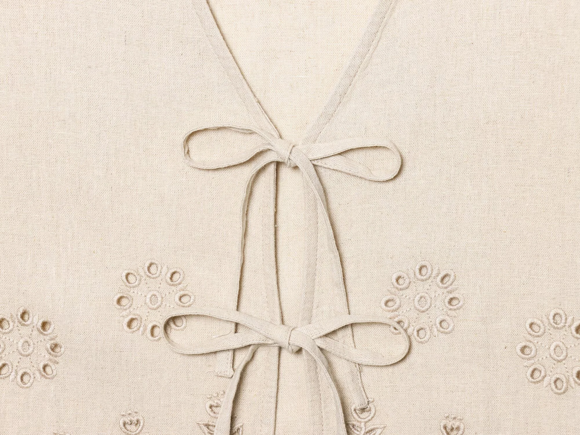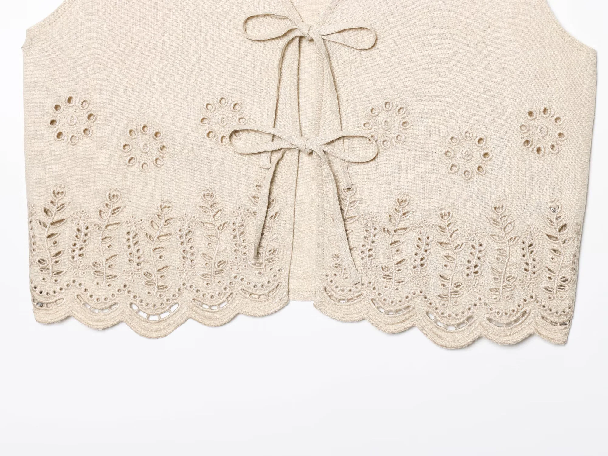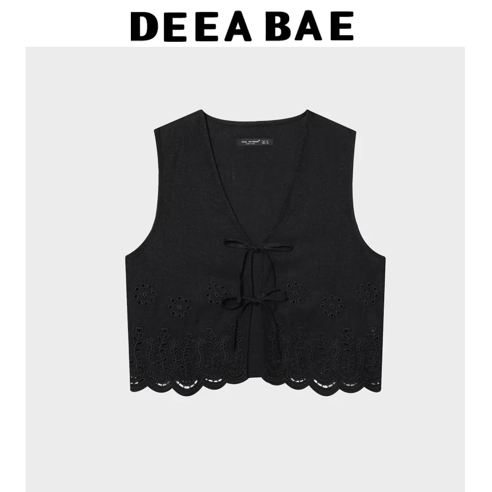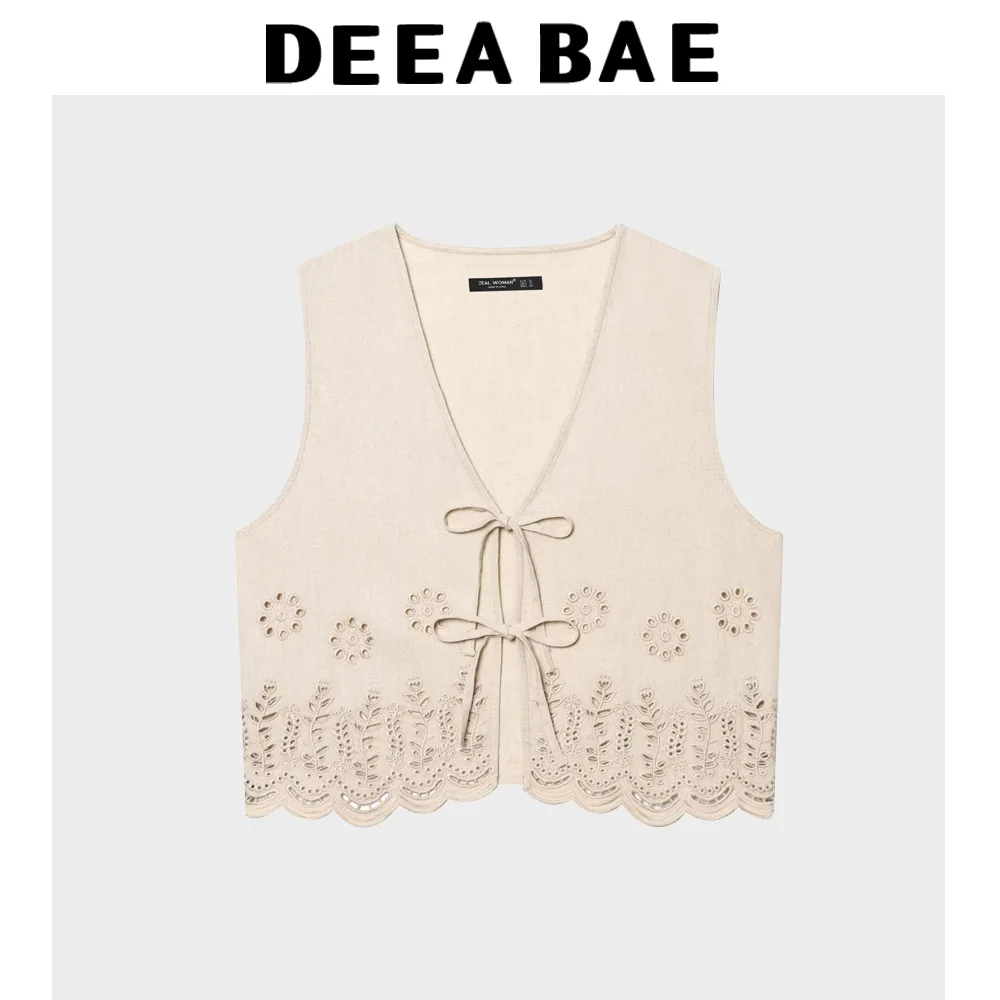 DEEABAE Summer New Women’s Fashion High End Heavy Duty Hollow Embroidery Linen Blended Tank Top