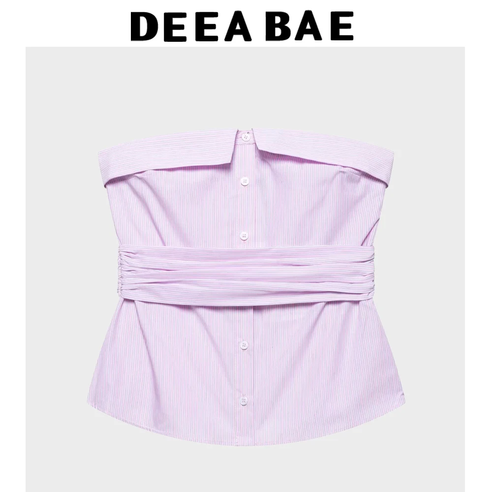 DEEABAE Summer New Women’s Fresh Violet Stripe Strap Design Fashionable Slimming Temperament Strapless Top