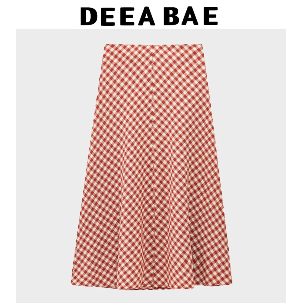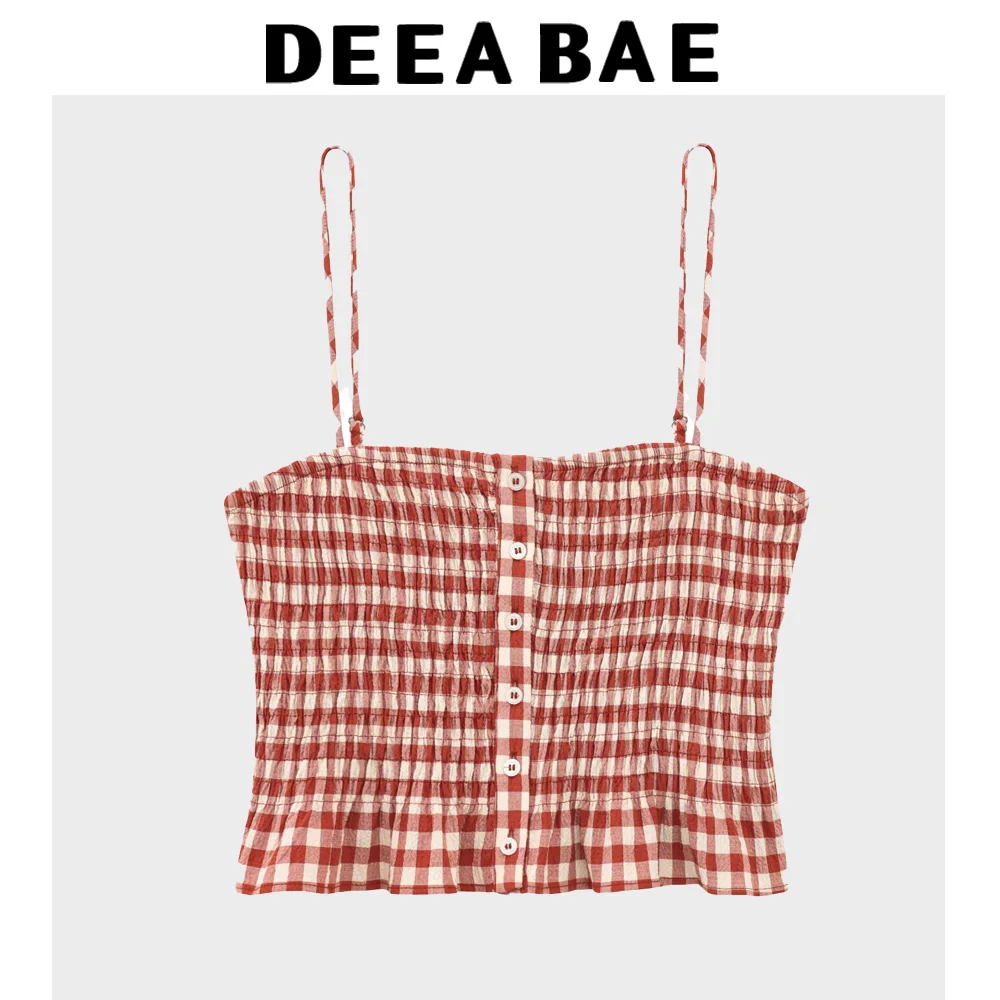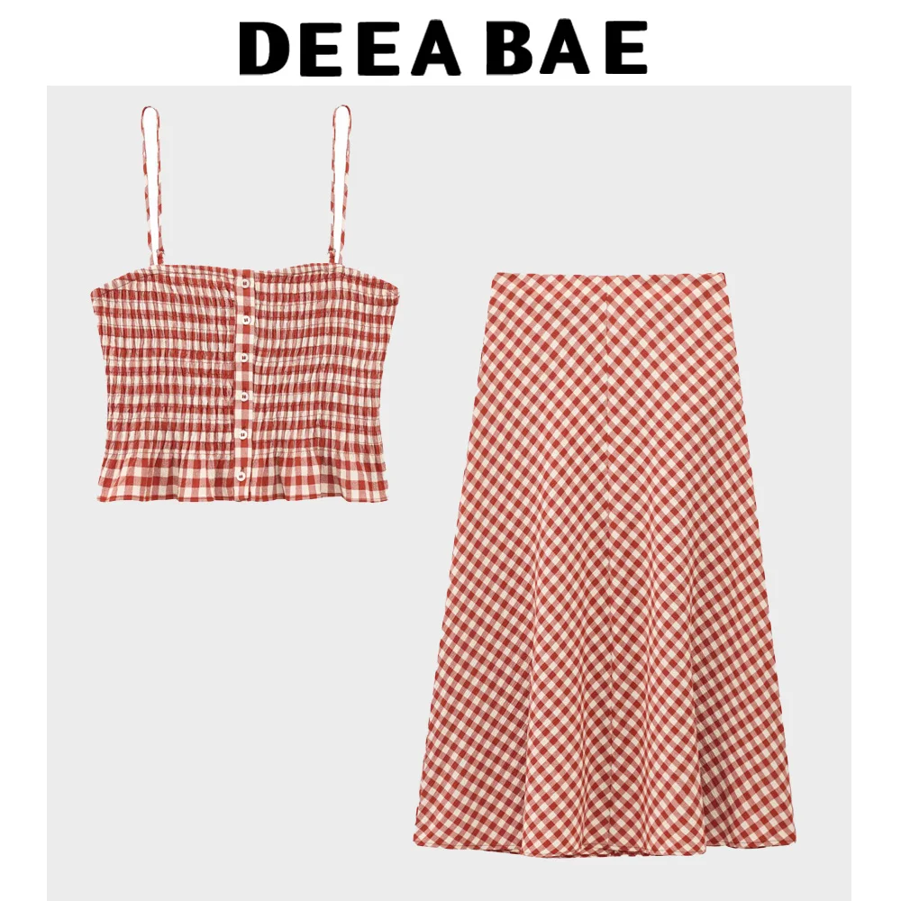DEEABAE Summer Thai Seaside Unique And Beautiful Outer Wear Slim Small Camisole Top Plaid Mid-length Skirt