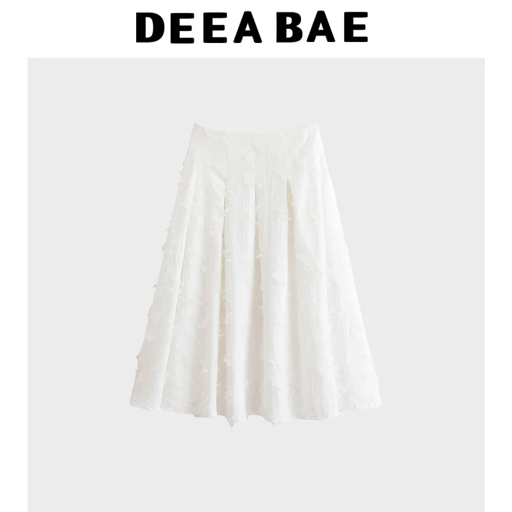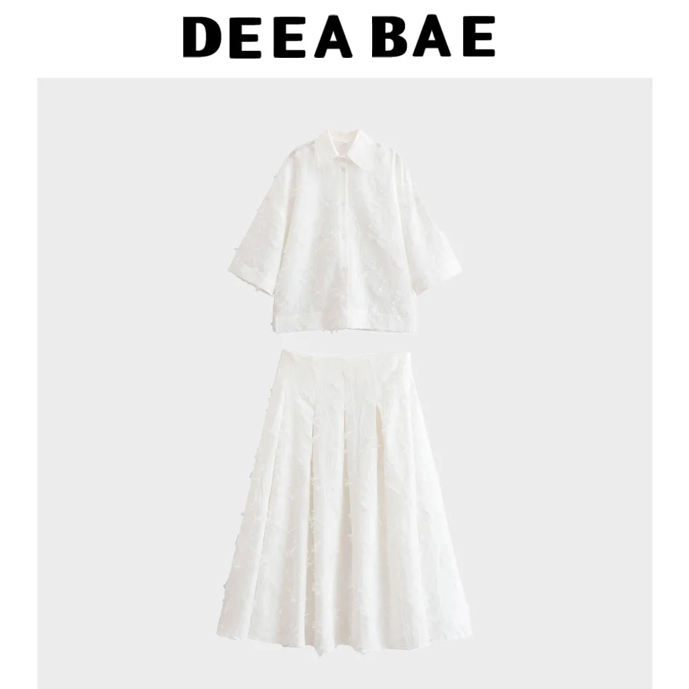 DEEABAE Summer Women's Casual Versatile Large Silhouette Tassel Shirt Tassel High Waisted A-line Skirt Set