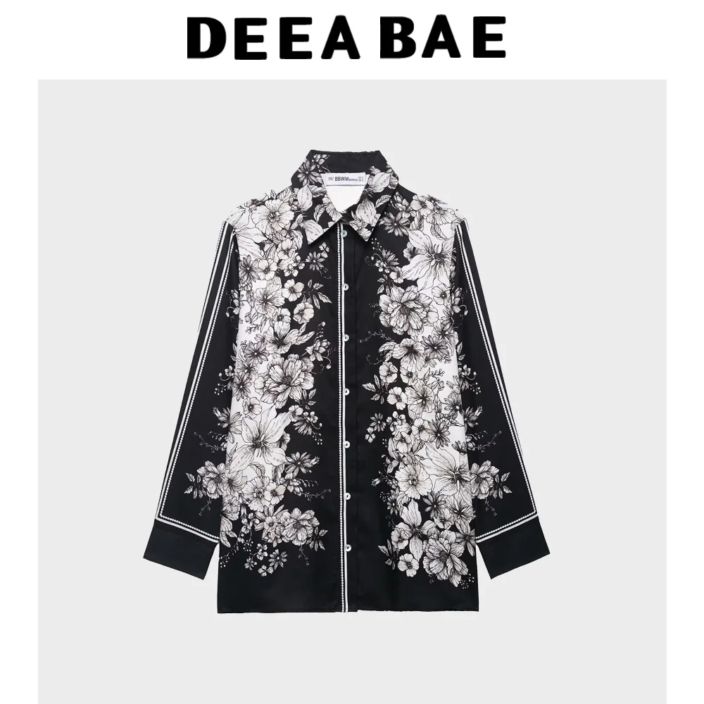 DEEABAE Summer women's clothing European and American style fashionable printed loose long shirt casual simple fluffy skirt set
