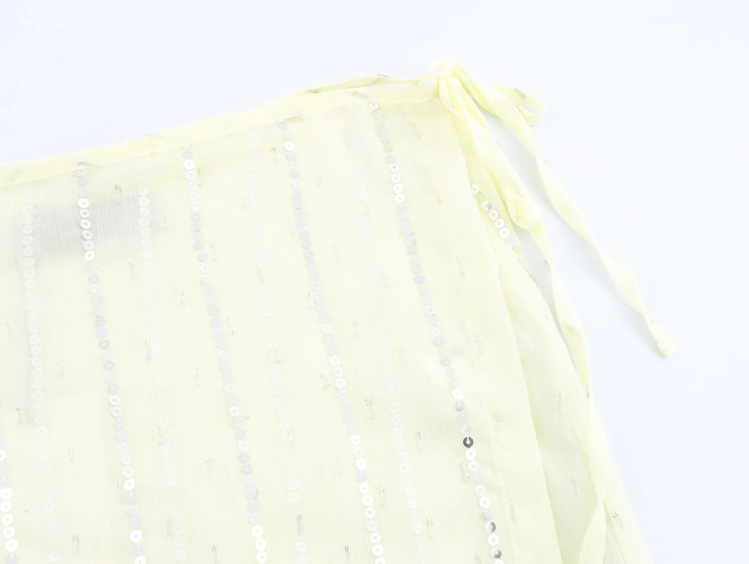 DEEABAE Summer women’s clothing new fashion temperament layered decorative bead top, yarn cage mid length skirt set