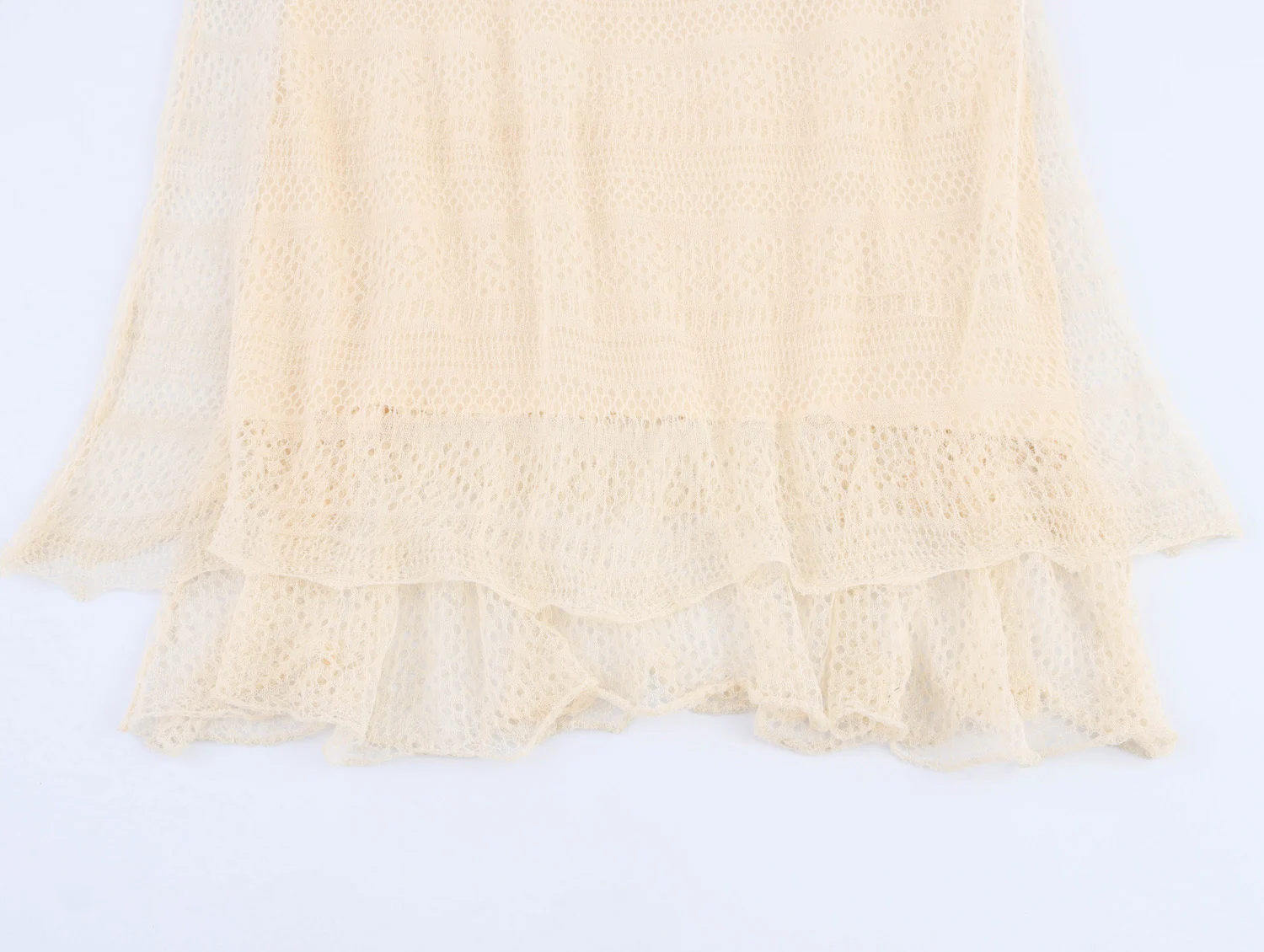 DEEABAE Summer Women’s Fashion Temperament Western-style Layered Decoration Jacquard Mesh Knitted Suspender Dress