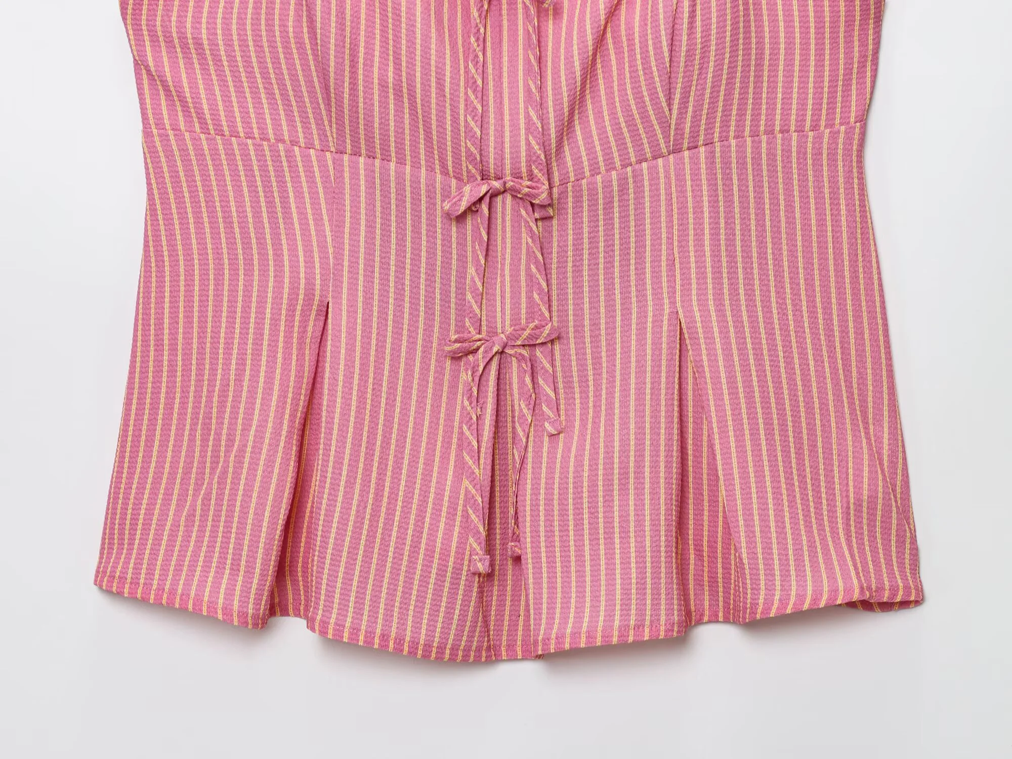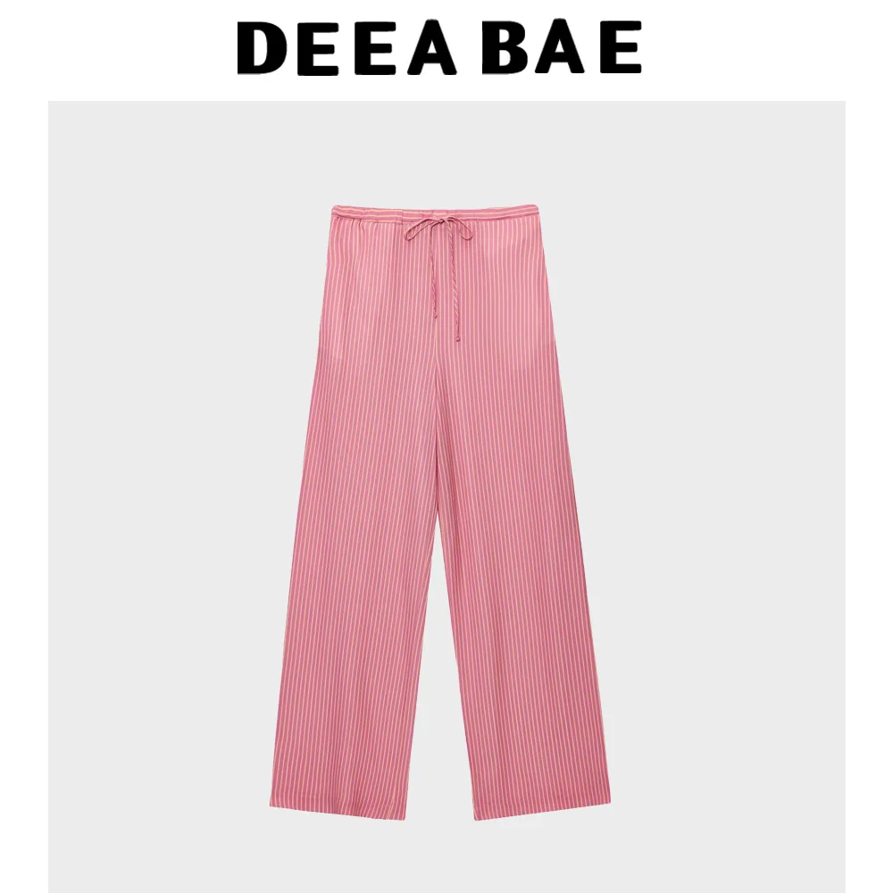 DEEABAE Summer women's fashion temperament with bow tie and striped suspender top high waist wide leg casual pants set