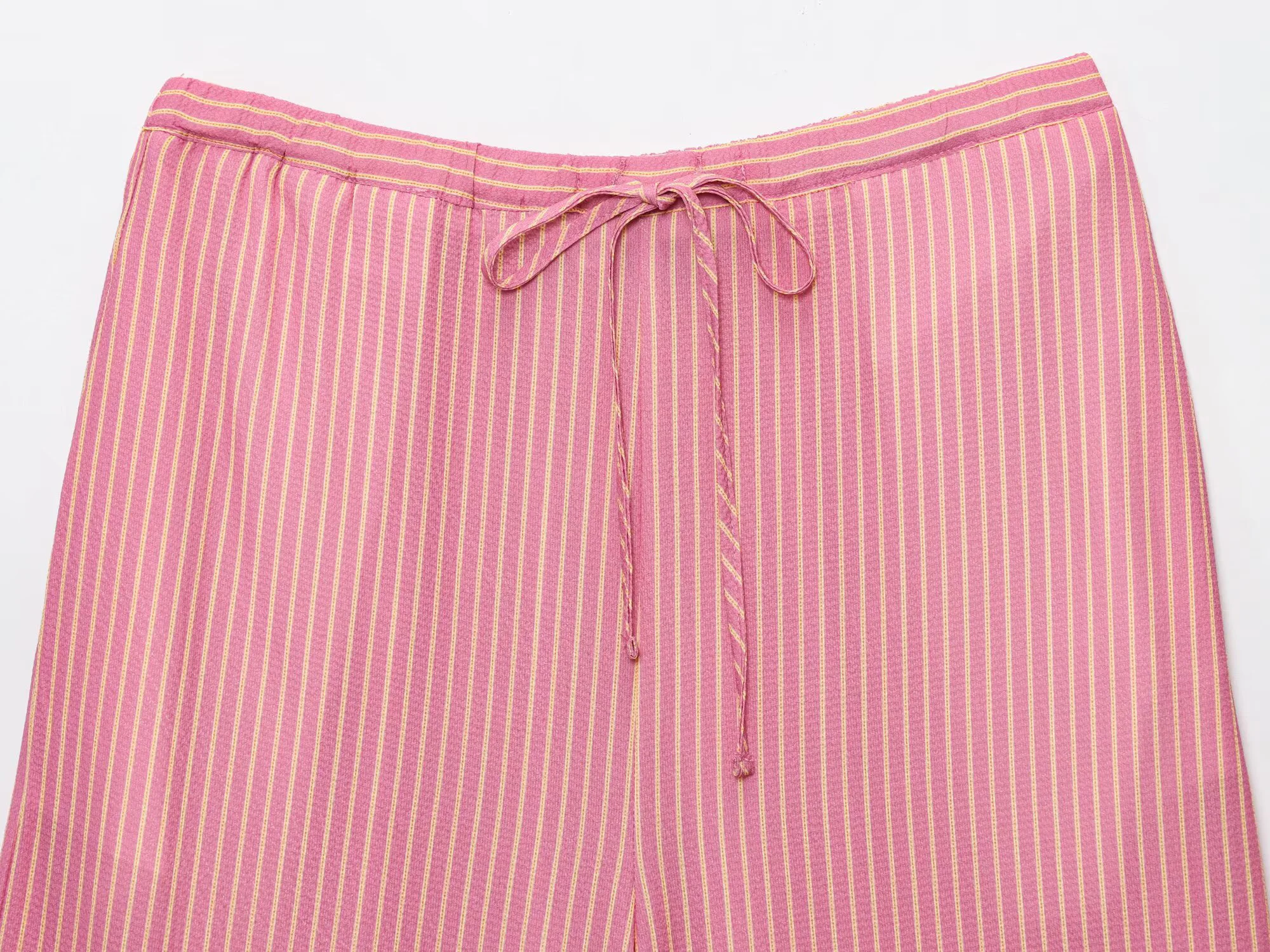 DEEABAE Summer women’s fashion temperament with bow tie and striped suspender top high waist wide leg casual pants set