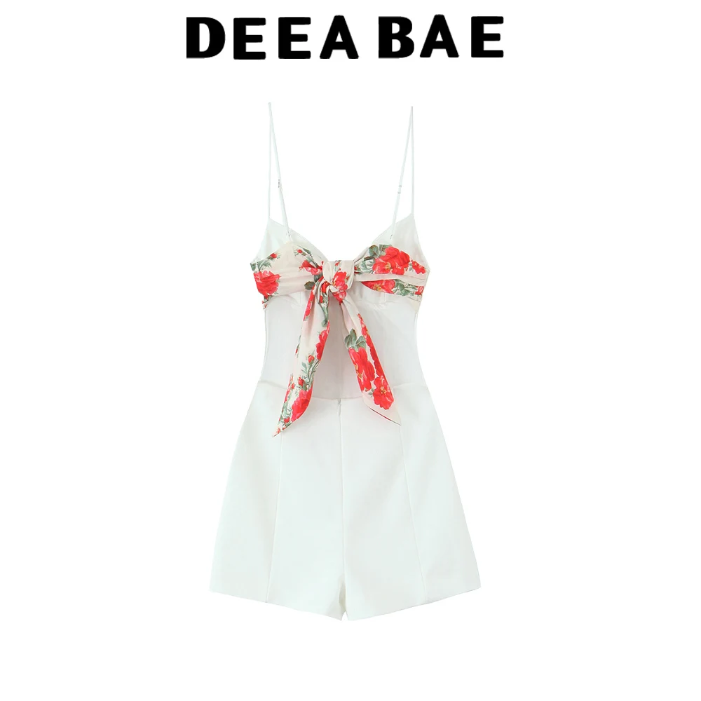 DEEABAE Summer Women’s Heart-shaped Collar Bow Decoration Thin Scarf Decoration Open Design Short Jumpsuit