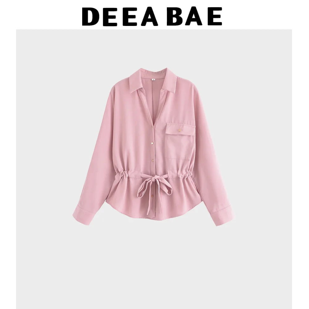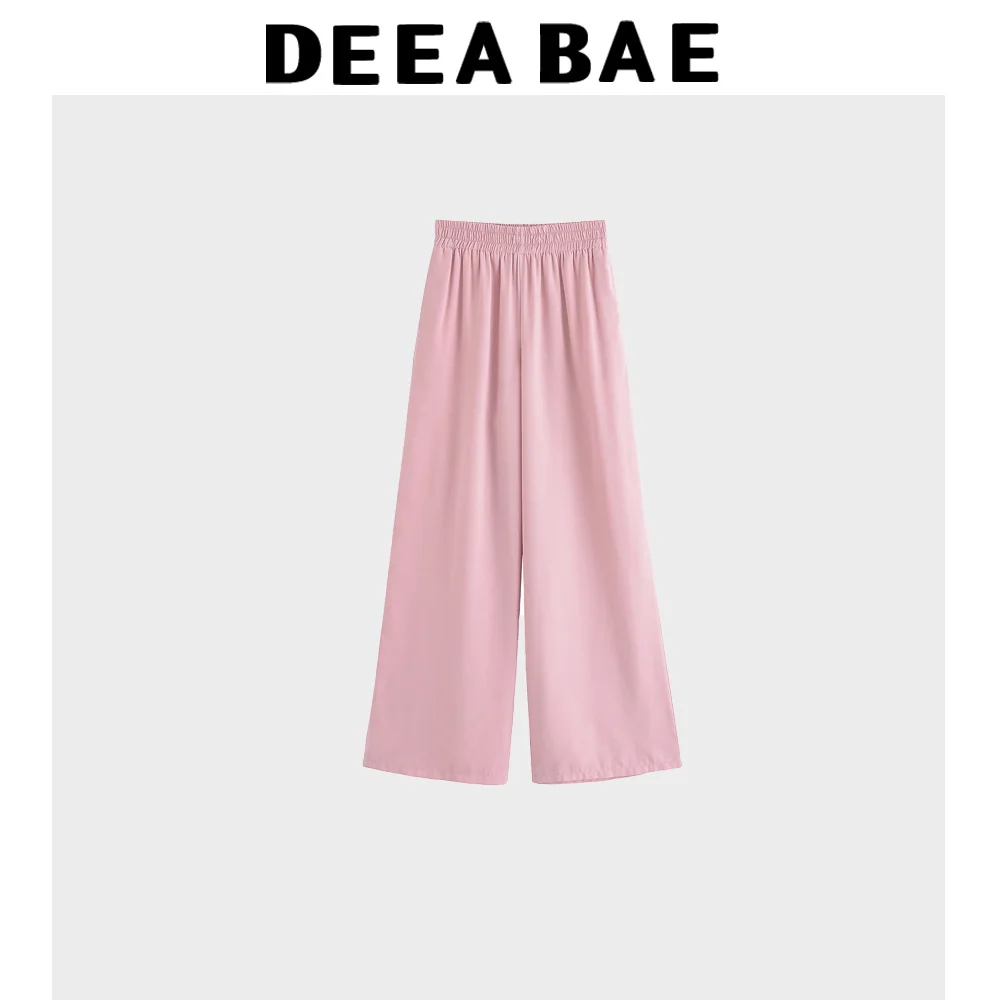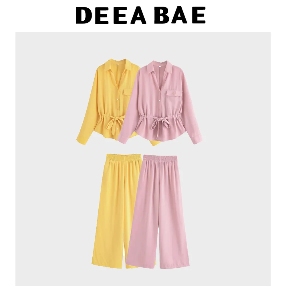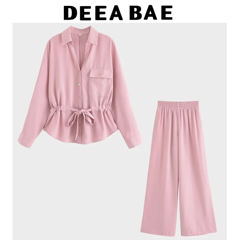 DEEABAE Summer Women's Hunting Outfit Style Crepe Fabric Lapel Long Sleeved Shirt Crepe Fabric Wide Leg Casual Pants Set