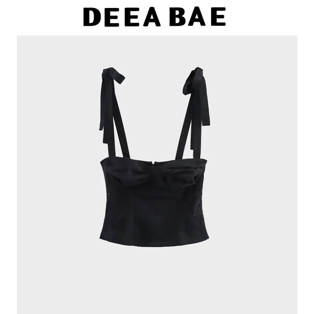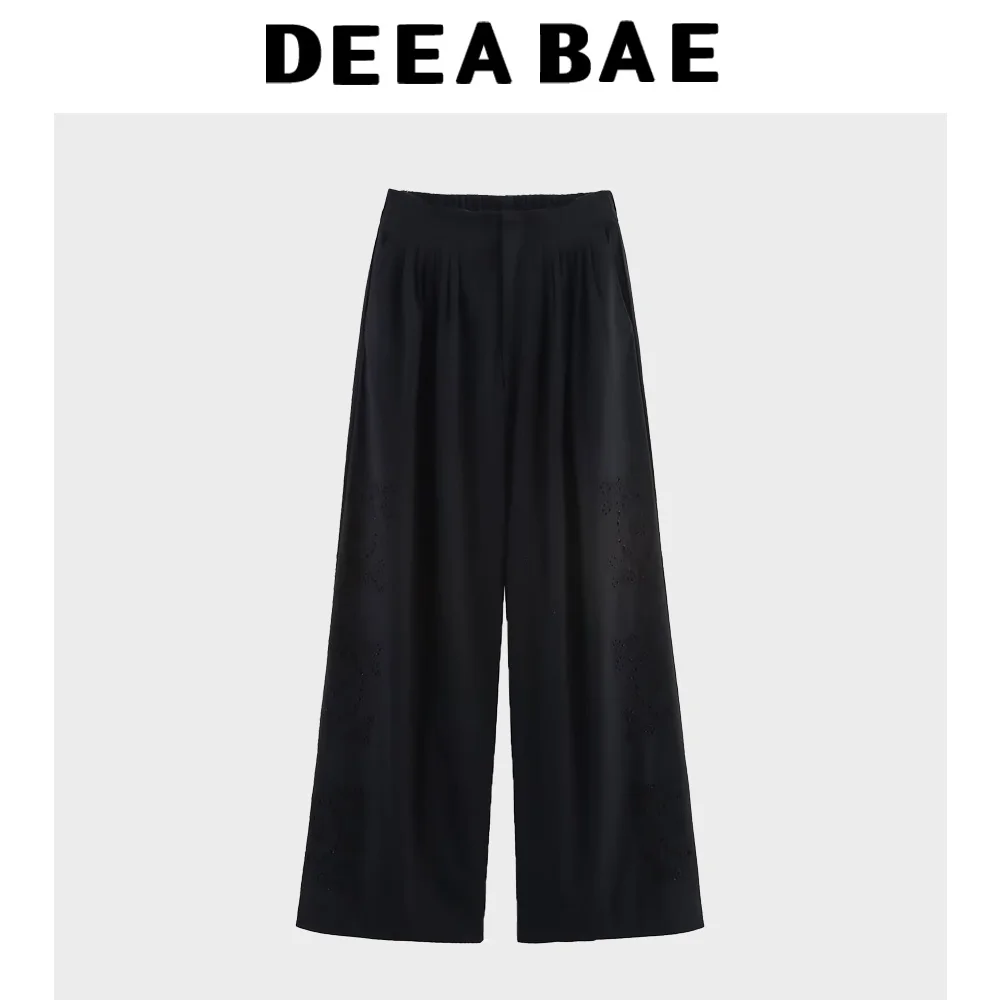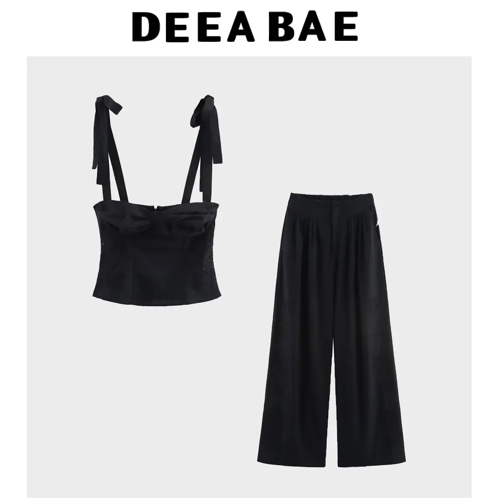 DEEABAE Summer Women's Linen Blended Bow Embroidered Top with Multi Fold High Waist Embroidered Pants Set