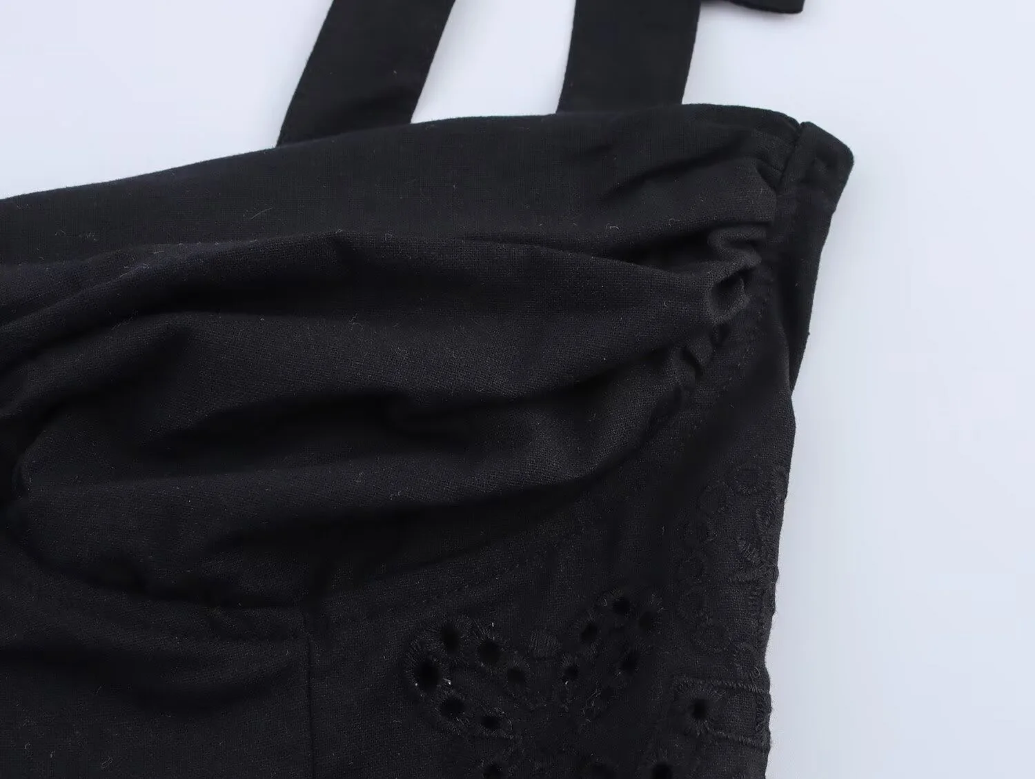 DEEABAE Summer Women’s Linen Blended Bow Embroidered Top with Multi Fold High Waist Embroidered Pants Set