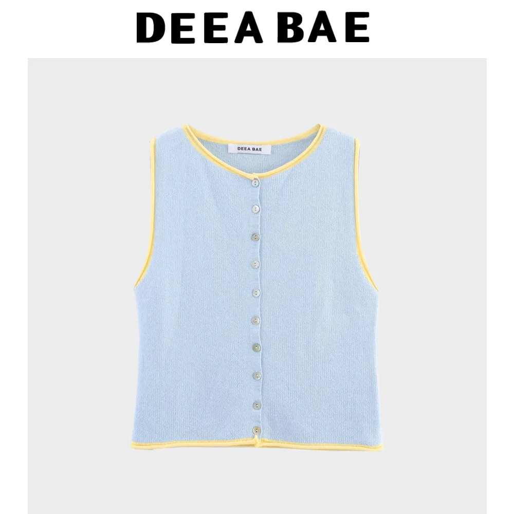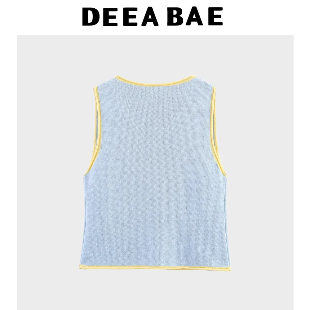 DEEABAE Summer women's simple and fashionable temperament patchwork decorative layer round neck sleeveless knitted top