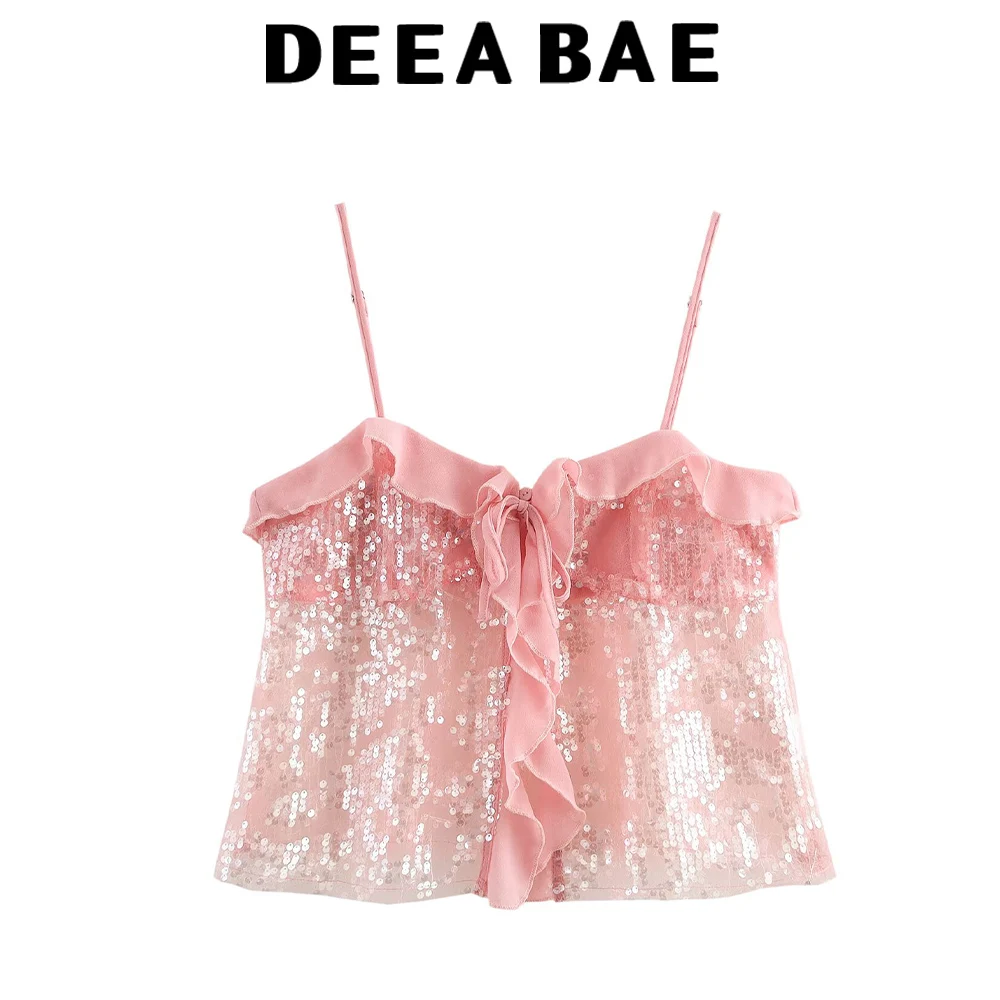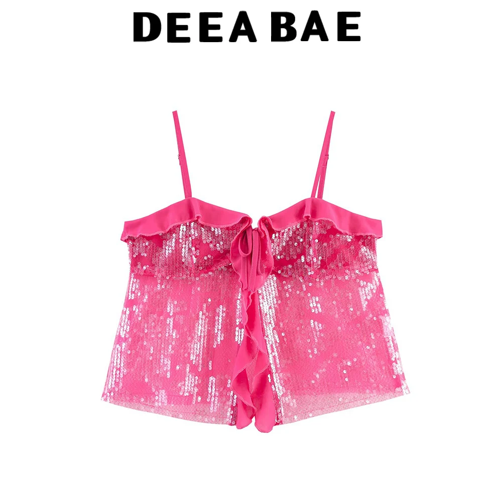 DEEABAE Sweet And Spicy Wind Heavy Industry Shining Butterfly Bow Strap Top Summer Perspective Outerwear Strapless Tank Top