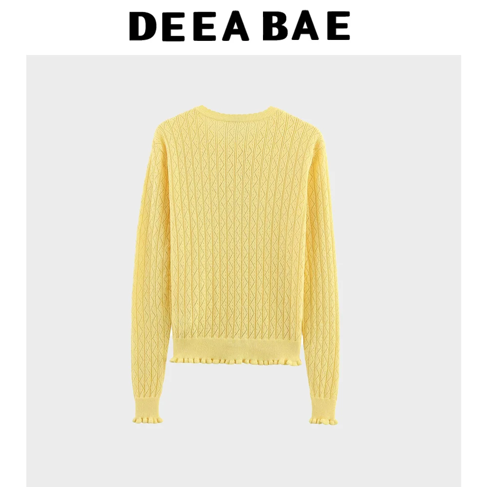 DEEABAE Versatile hollow cardigan summer new Korean lace round neck jacket knitted sweater air conditioning shirt