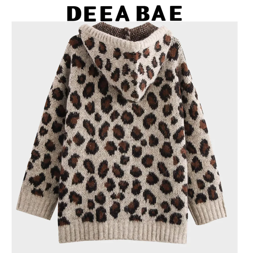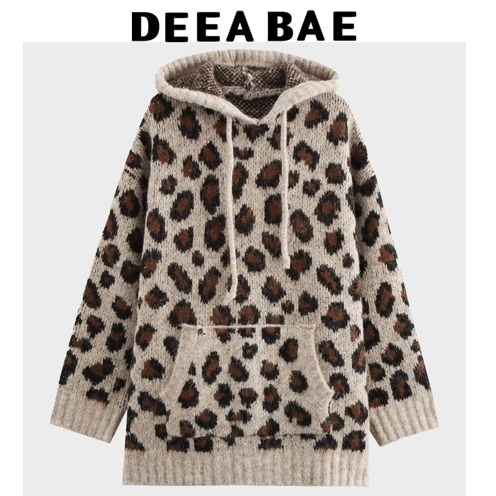 DEEABAE Winter New Women’s Loose Animal Pattern Jacquard Drawstring Long Sleeved Knitted Sweatshirt Woman Clothing Hoodie Sweate