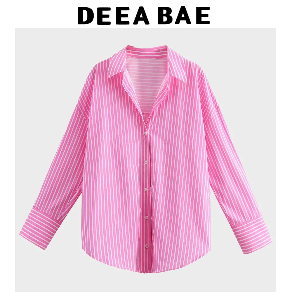 DEEABAE Women Designer Luxury Loose Casual Lapel Long Sleeve Basic Poplin Shirt Fashionable Temperament Versatile Tops
